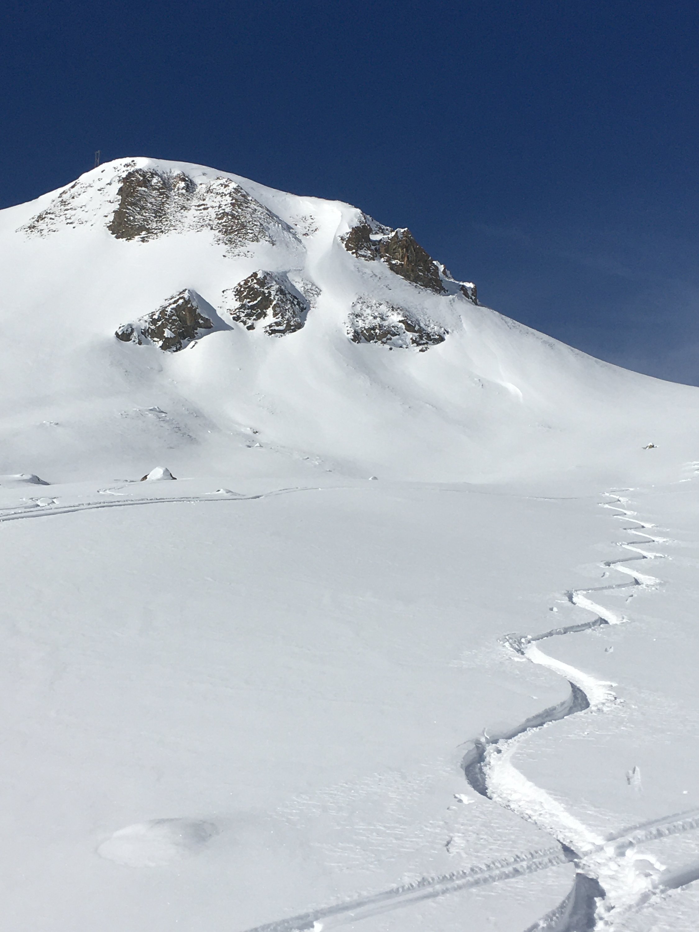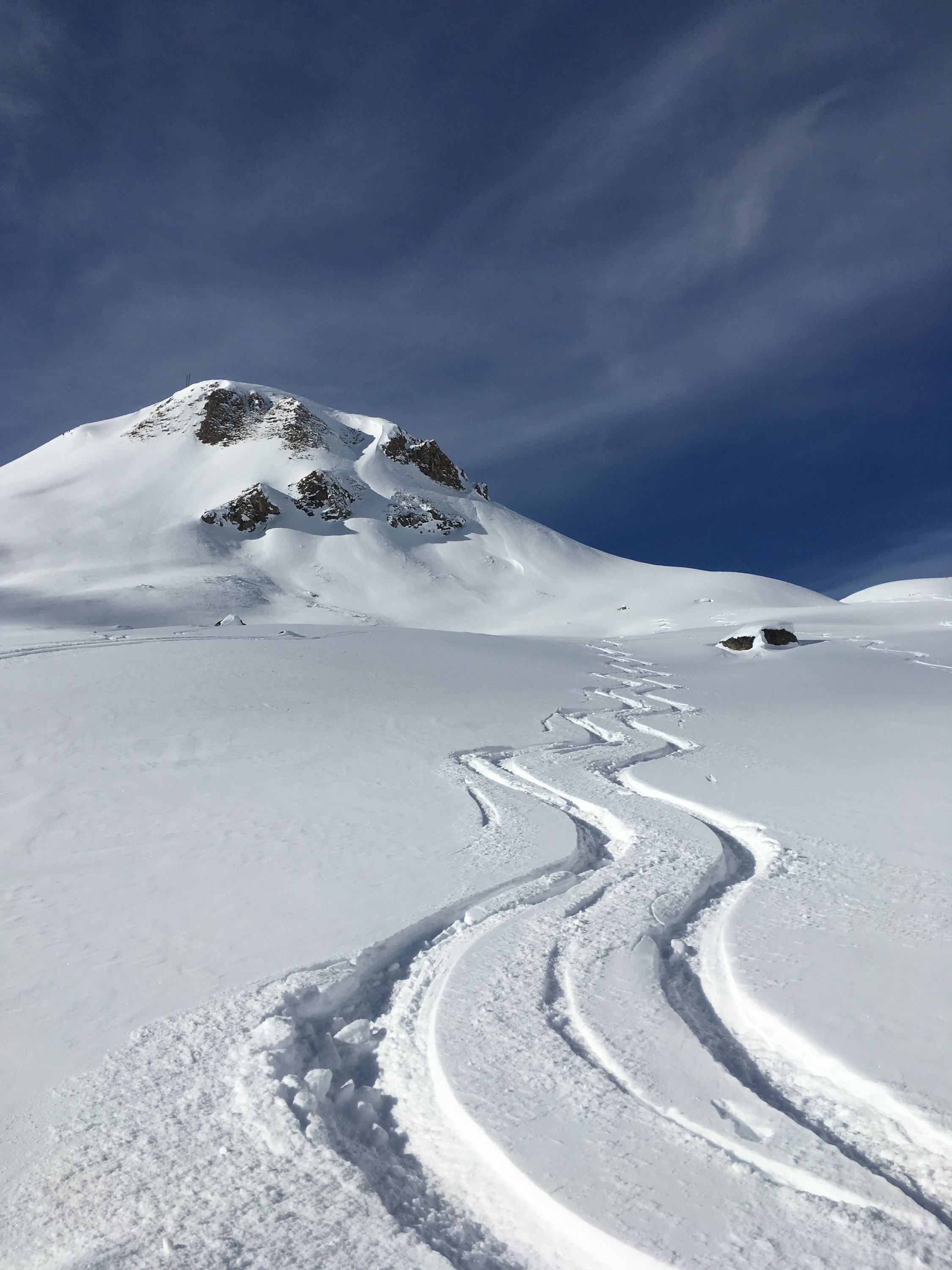 Sehr schöne und auch einfache Tour mit Genussabfahrt, Traverse im Val d‘Es-cha sonst nie wirklich steil, max. 25 Grad. Empfehlenswert.