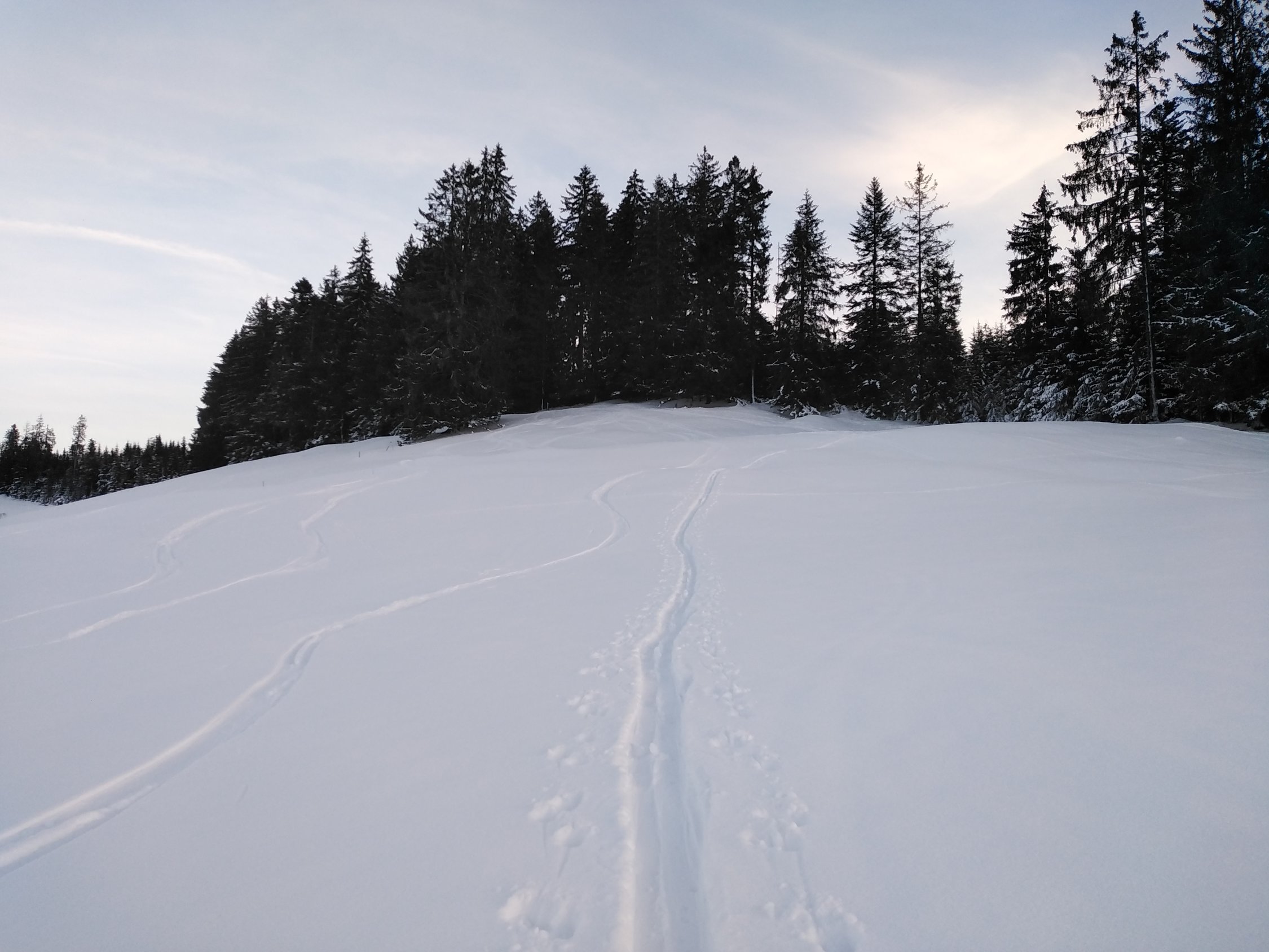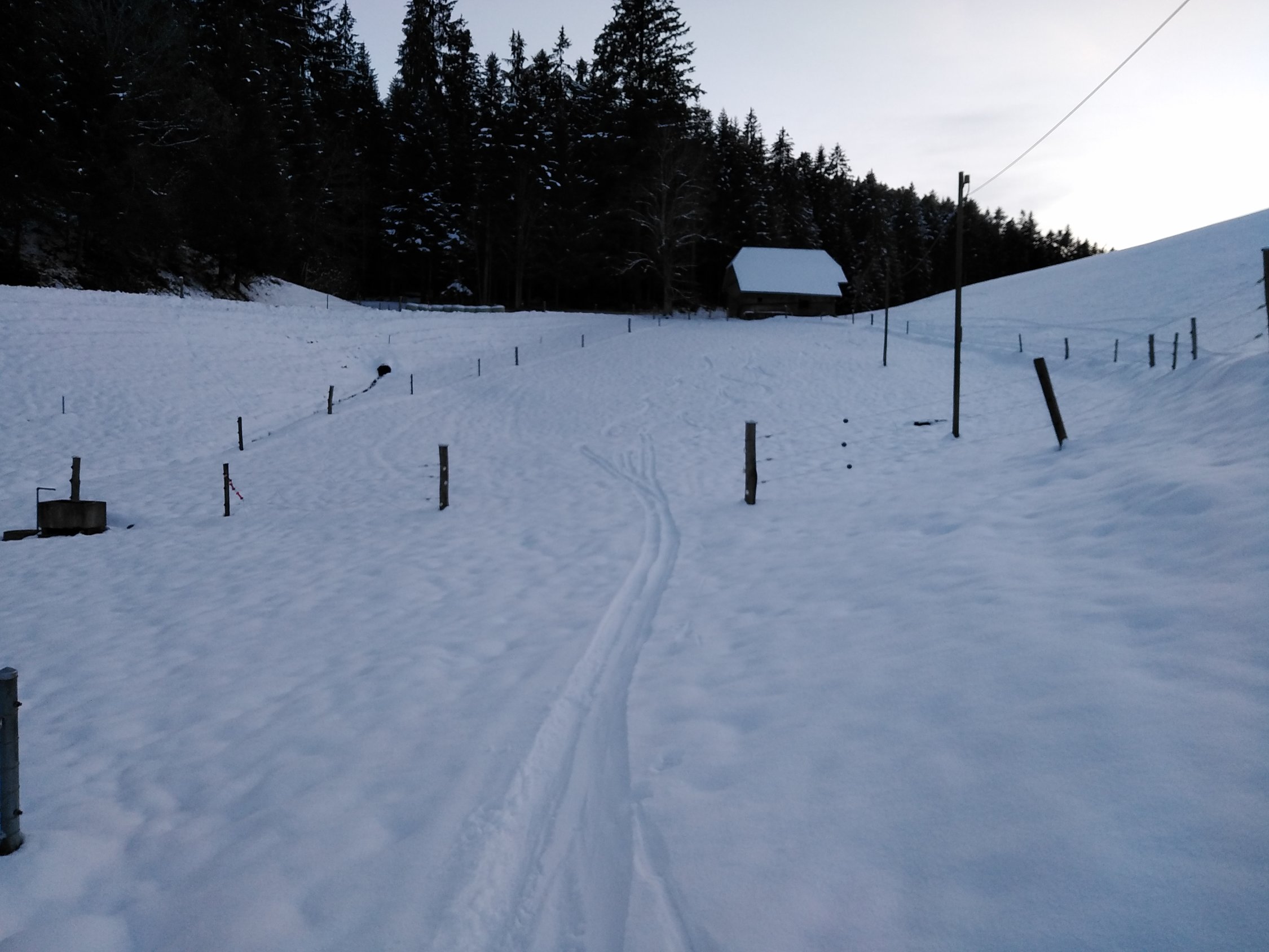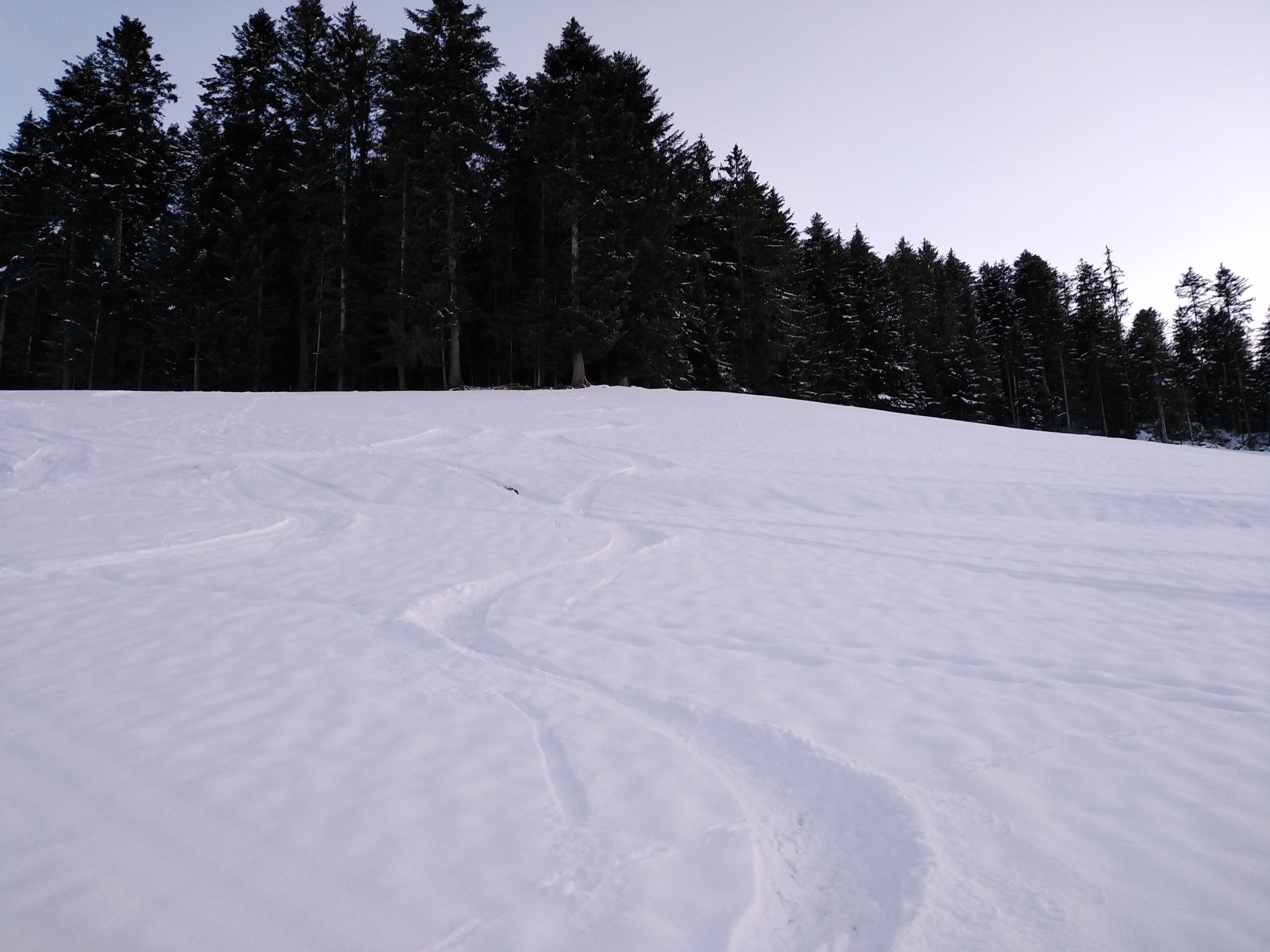Oberhalb 920m gute verhältnisse mit 10cm Pulverschnee auf fester Unterlage schön zu fahren