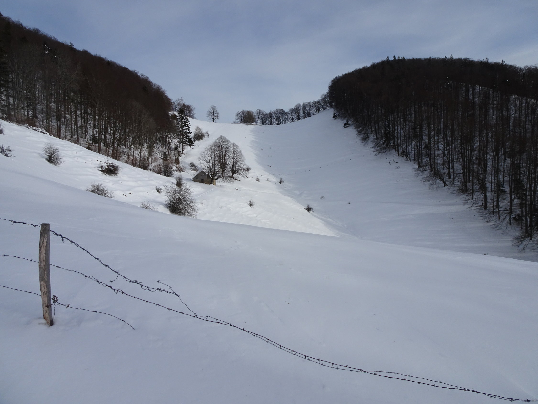 Schnee: dies ist wieder ein Winter im Jura - überall sehr viel Schnee(35-50cm) mit guter Unterlage, sogar die Schlüsselstelle(Waldpassage zwischen Sattel Lauch 1014m und Buechmatt) konnte passiert werden ohne Steinkontakt, teilweise noch Pulver, sonst schwerer aber gut zu fahrender Feuchtschnee