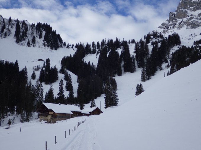Start auf ca. 1200 im Chirel-Tal. Abkürzung nach Gurschwald. Via Ramsli auf die Abendmatte weiter nach Gurbs Metteberg und Richtung Grat. Die Route ist gut eingeschneit und mit Ski, Splitboard und Schneeschuhen durchgehend begehbar. Überwiegend feuchter Pulverschnee noch ohne Deckel, ab Abendmatte mehr oder weniger intensiv windgepresst.Im Gratvorfeld auch abgeblasen. Temperatur auf 2000 m +4°. Wechselnde Lichtstimmungen, immer wieder Böen, eine mächtige Schlechtwetterfront über dem Grat hat sich glücklicherweise verzogen. Auf den Grat verzichtet, dort tobte der Sturm.