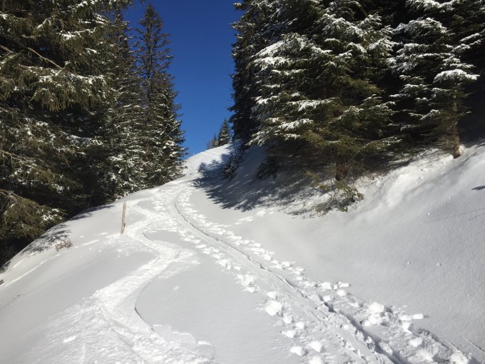 Bin am morgen um 8.00 Uhr bei der Sagi gestartet und war ganz alleine unterwegs. Alles von unten bis oben neu gespurt. Von Fädimäns Spur war nichts mehr zu sehen. 30-40 cm Neuschnee. Traumhaft schöner Pulverschnee. Gipfelbereich, wie oft, abgeblasen. Beim runterfahren habe ich noch eine Gruppe und zwei einzelne Tourengänger getroffen. Grosser Lawinenkegel besser auf der Bachseite umgehen, als darüber steigen. Eine sehr lohnende Tour.