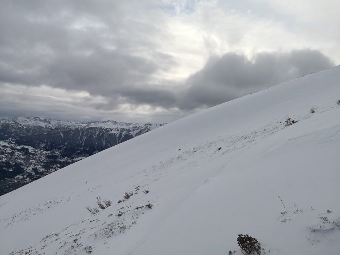 Oben abgebladen, steine vorsichtig umfahren. In der Mitte perfekte Bedingungen mit ca. 10cm Pulverschnee auf harter unterlage. Im unteren Bereich Bruchharsch.