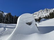 Alles tip top eingeschneit. Neuschneehöhe auf Grimmialp nicht so viel (hat zum Teil auch geregnet), 30-40cm zwischen beiden Hütten (1600-1800), darüber wie immer am Mariannenhubel weniger wegen dem Wind. Aber etwas von den Kuppen weg hat es genug Schnee.