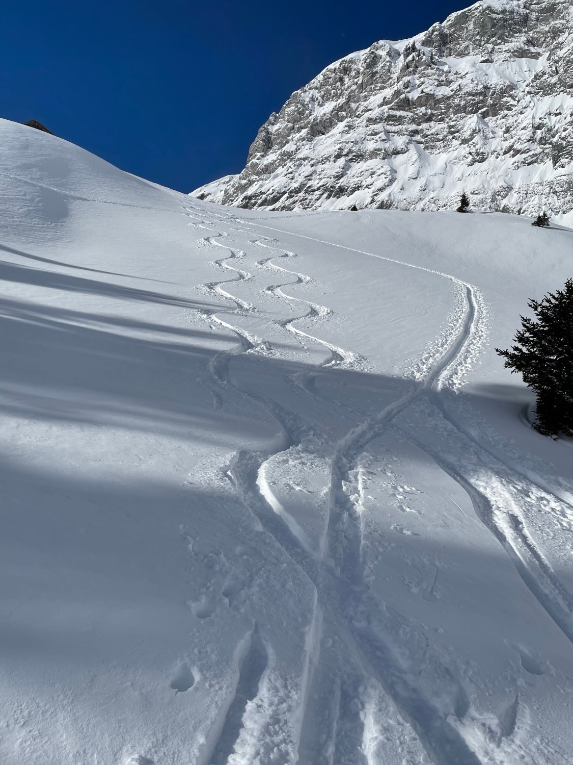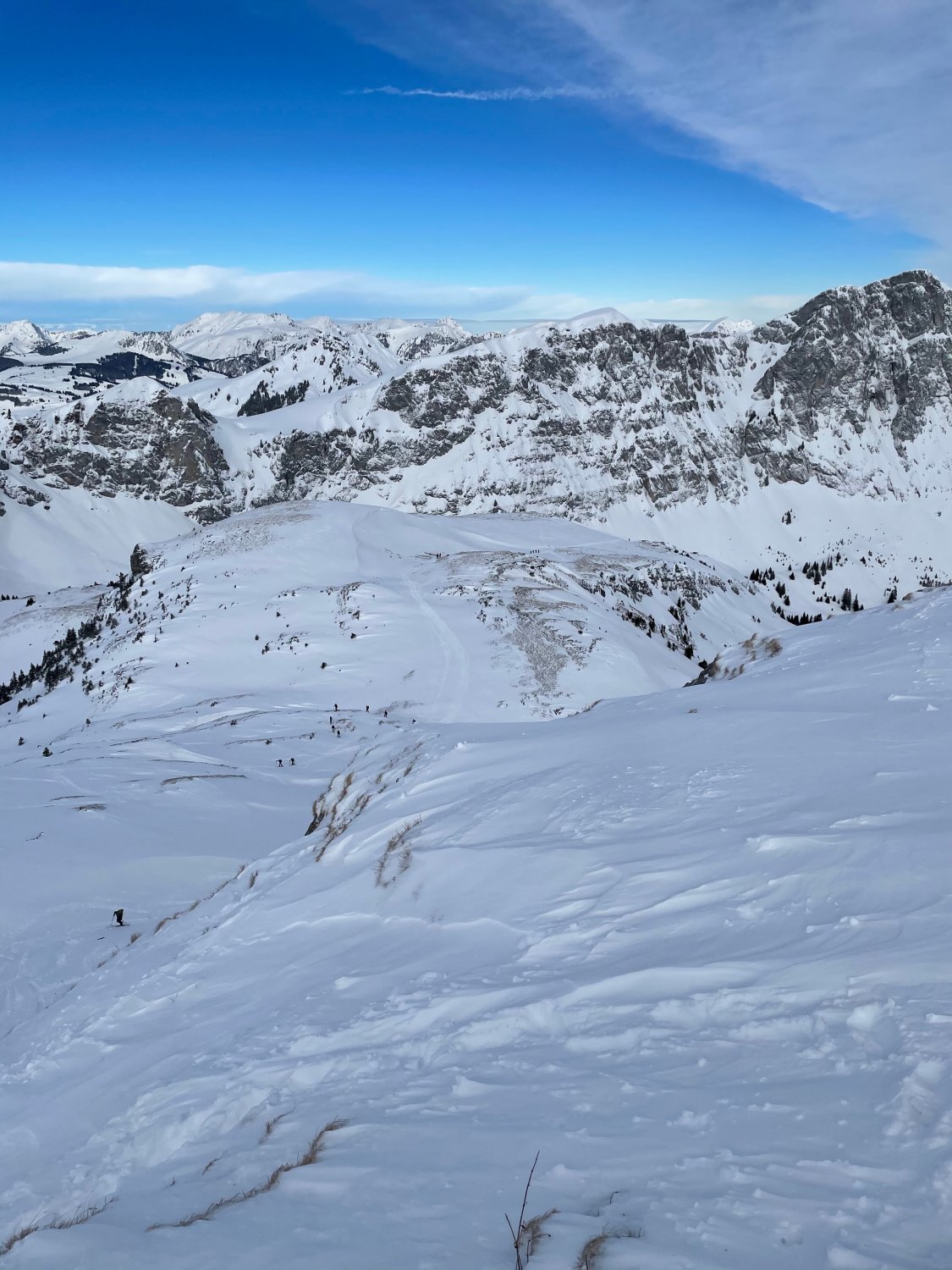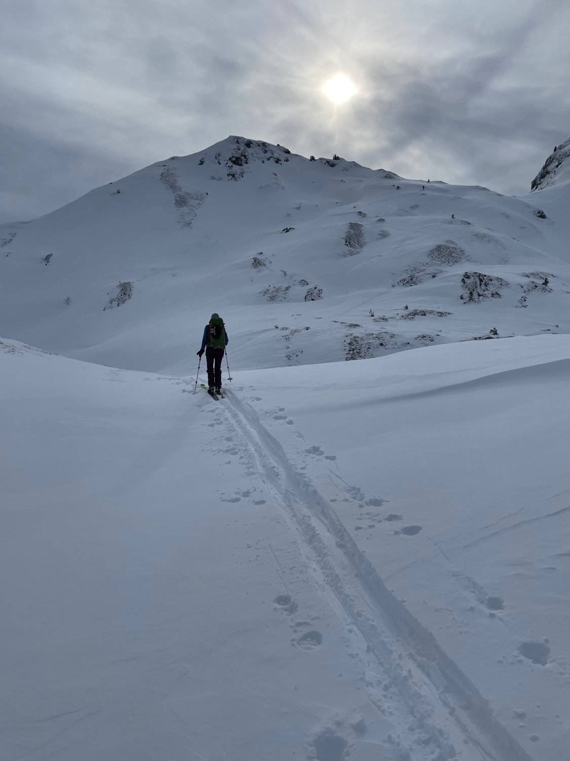 Das Chelli ist jetzt ziemlich sicher umgestochen. Wir haben die unberührten Hänge auf der Aufstiegsroute genossen. Hat sich am Nachmittag eventuell auch noch geändert.