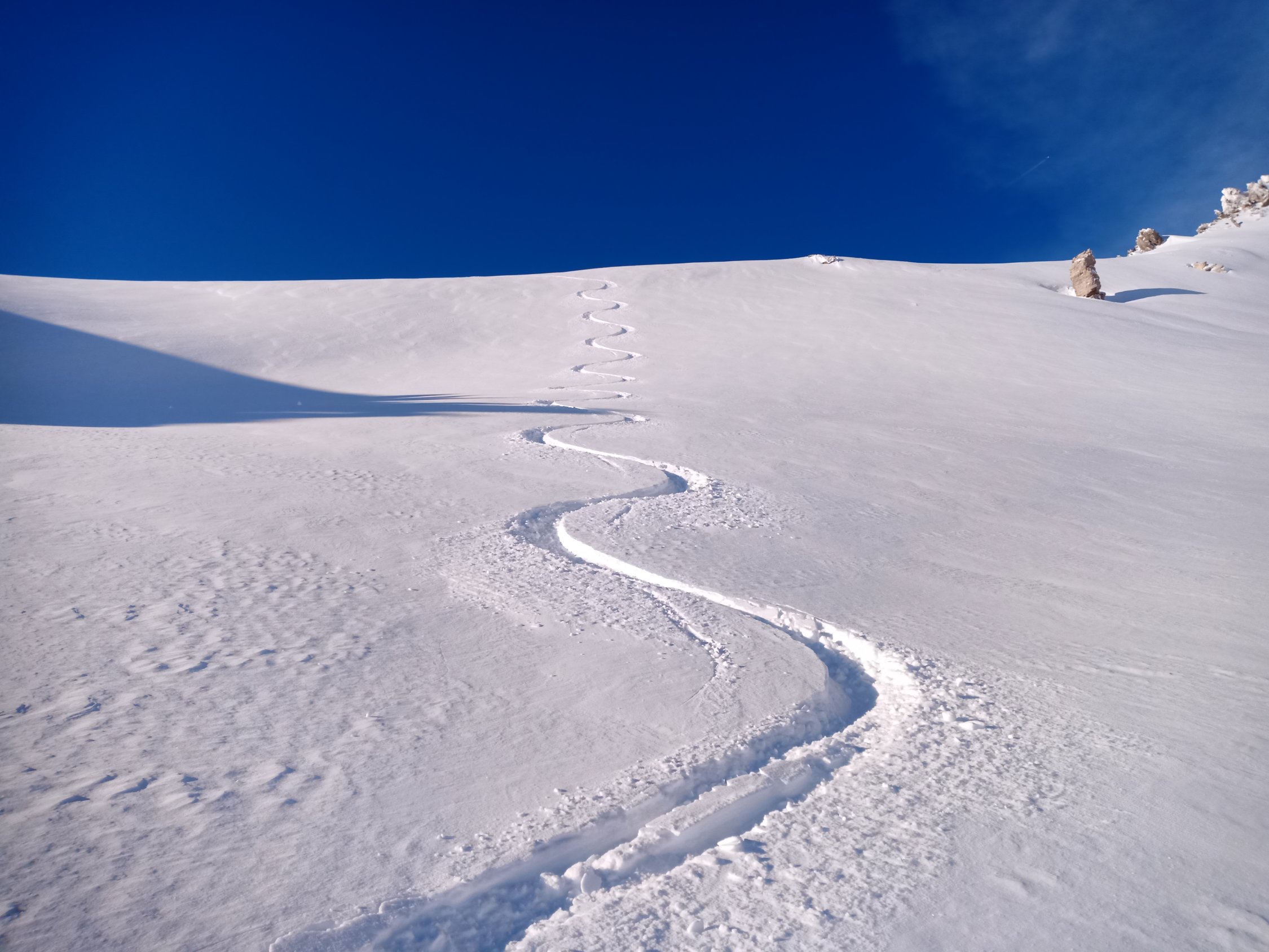 Viel Spurarbeit im Aufstieg, dafür Genuss in der Abfahrt.