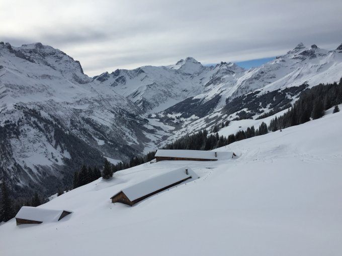 Auch im Glanerland hat es heute schönen Pulverschnee gegeben. Allerdings war für Spätaufsteher entlang der Aufstiegsroute zwischen Mittelstafel und Fanenfurggeli nicht mehr viel zu holen. Die Abfahrtsvariante nach Chamm war die lohnende Alternative.