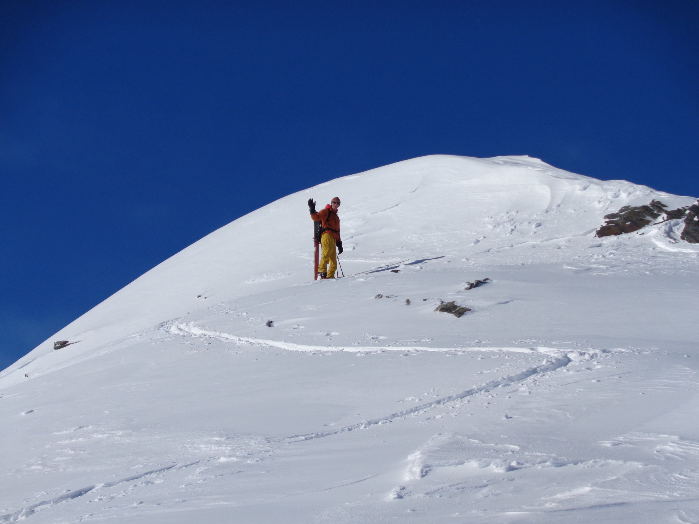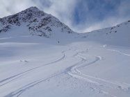 Vielen Dank an Wilfrid für die ausgezeichnet angelegte Aufstiegsspur! Wir durften als erste durch den traumhaften Neuschnee steigen und abfahren.