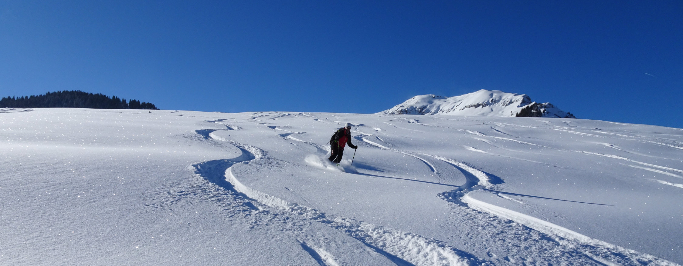 Heute haben wir an der Pfufisegg beste Verhältnisse angetroffen. Aufgrund der LW-Stufe 3 haben wir auf die ganz steilen Hänge verzichtet. Trotzdem sind wir mehr als auf unsere Kosten gekommen - das kann man fast nicht mehr toppen!