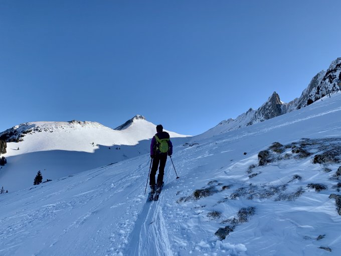 Im Gipfelbereich etwas abgeblasen, sonst genügend Pulverschnee