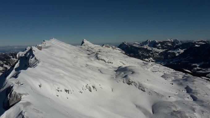 Auf der Ebene unterhalb der Hütte fellte ich nochmal an und ging auf einen schönen kuppierten namenlosen Hööger am Schrattengrat.