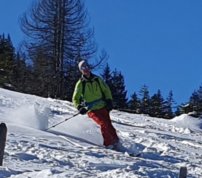 Heute klappte einmal alles, Wetter wolkenlos, Schnee in Hülle und Fülle und erst noch pulver von oben bis unten.