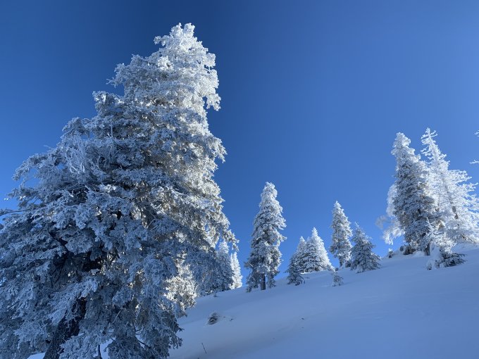 Die Abfahrt nach Norden hinunter retour Richtung Les Savagnieres ist wesentlich besser - obwohl es natürlich auch hier an einem Sonntag schon ziemlich umgeackert wurde. Aber wenn man sich abseits der Piste hält gibt es auch noch soetwas wie Pulverschnee. Alles in allem - auch aufgrund des unerwartet tollen Wetters - eine tolle Tour die man beliebig in die Länge ziehen kann. Insgesamt haben wir 1600 Höhenmeter abgelaufen.