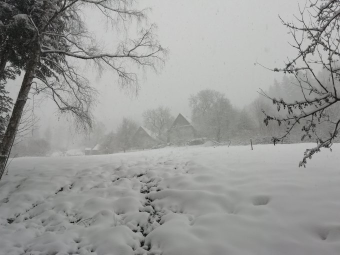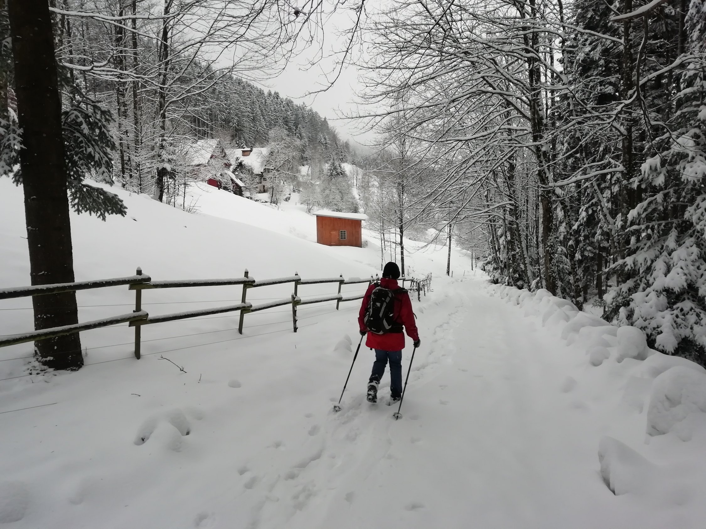 Im unteren Teil Nassschnee, ab der Wiese im Gottschlägtal Altschneeunterlage. Am Rückweg haben wir recht weit oben die Schneeschuhe ausgezogen. War angenehmer zu gehen