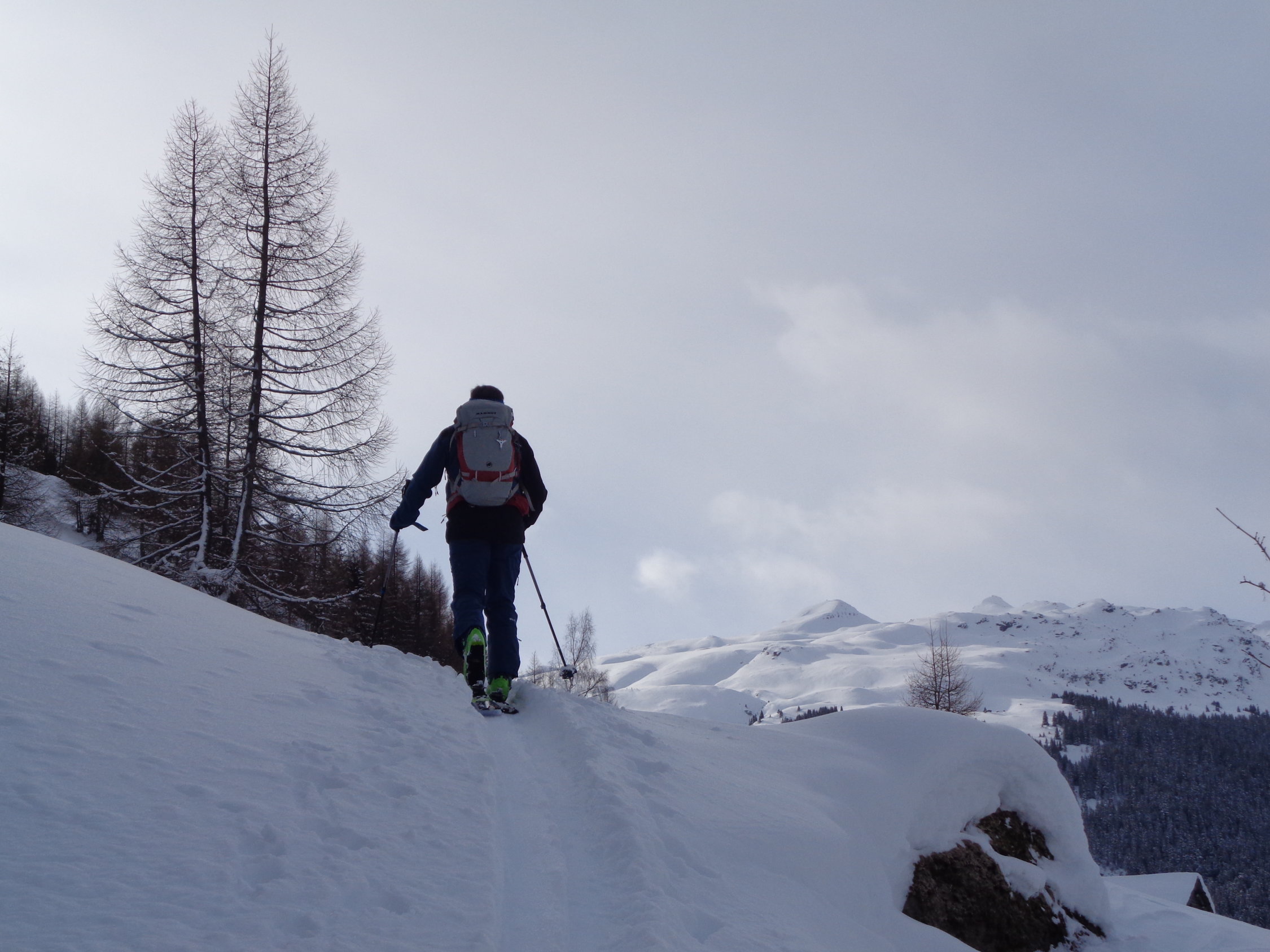 Genau die richtige Tour in Vals, wenn an den hohen Gipfeln das Wetter, die Sicht nicht stimmt oder starke Winde eine kritische Triebschneeproblematik geschaffen haben.