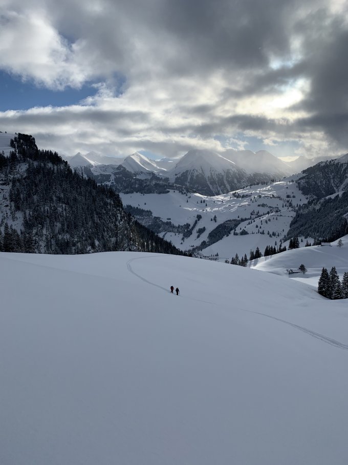 Sehr gut eingeschneit. Pulver. Bei Spicherböden defensive Routenwahl gewählt.