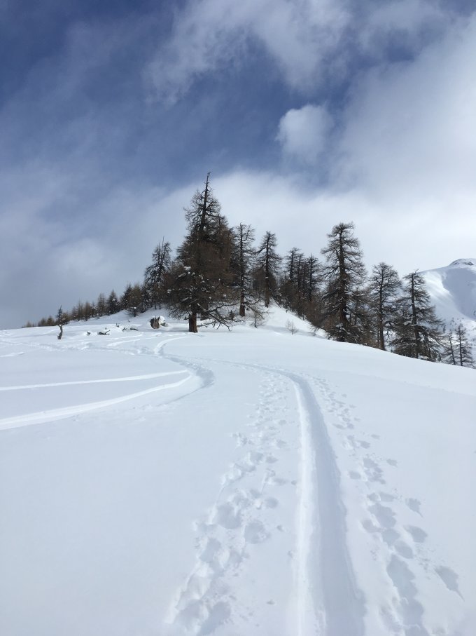 Immer wieder lohnende Tour, auch nur bis Punkt 2337, sehr schöne Abfahrt in der Waldschneise, auch bei schlechtem Wetter ist die Sicht unter der Waldgrenze gut. Sehr viel Schnee Val Arpiglia resp. Piz Uter Route!