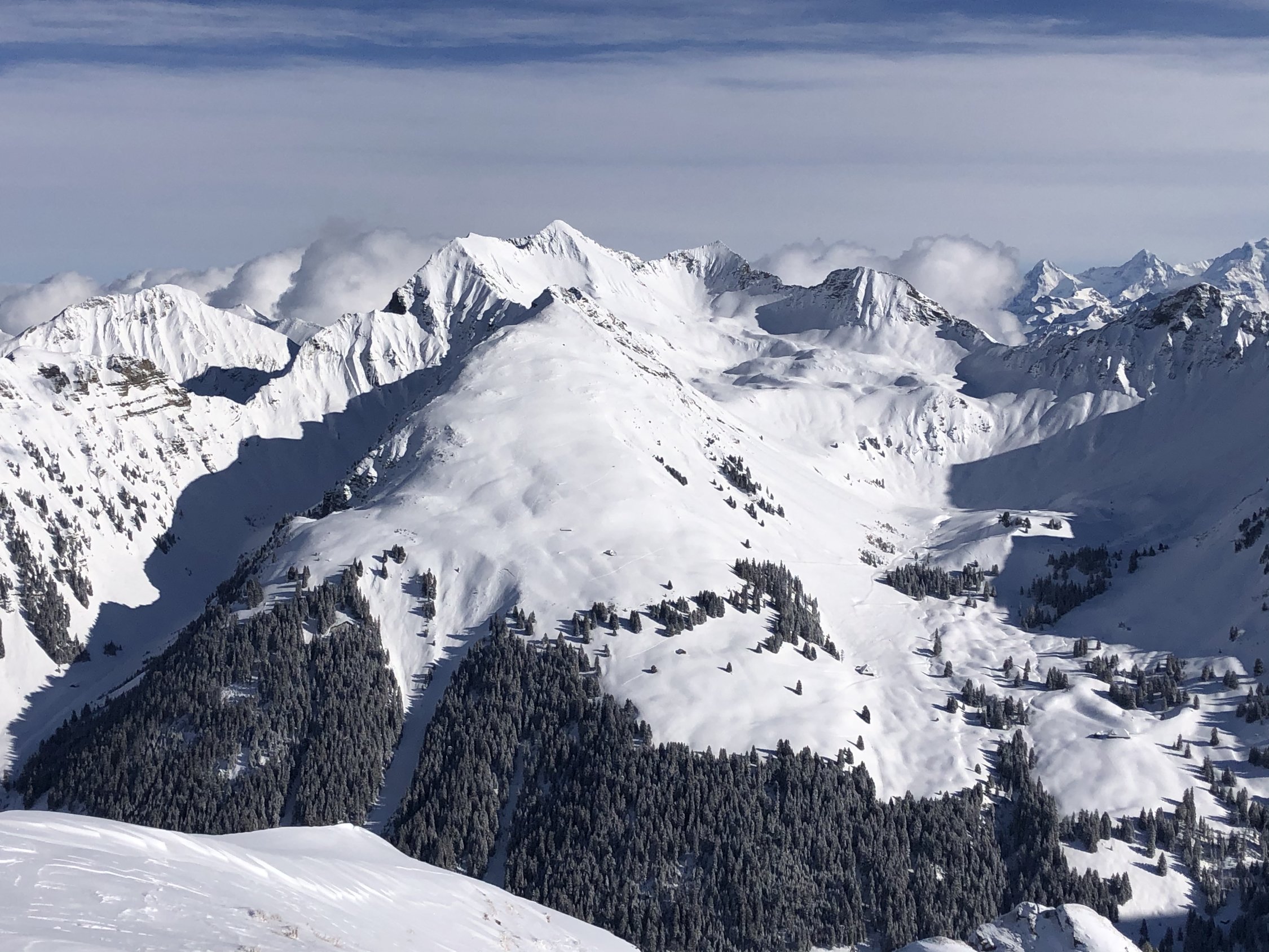 Start bei -10 Grad beim Parkplatz Grimmialp. Pulver von oben bis unten, manchmal fast zu viel. In den flachen Passagen musste ich in der Aufstiegsspur abfahren, da ich sonst zum Stillstand gekommen wäre. Danke den ersten Spurern, es gab 30-40cm Neuschnee. Die vielen Leute verteilten sich zum Glück sehr gut.