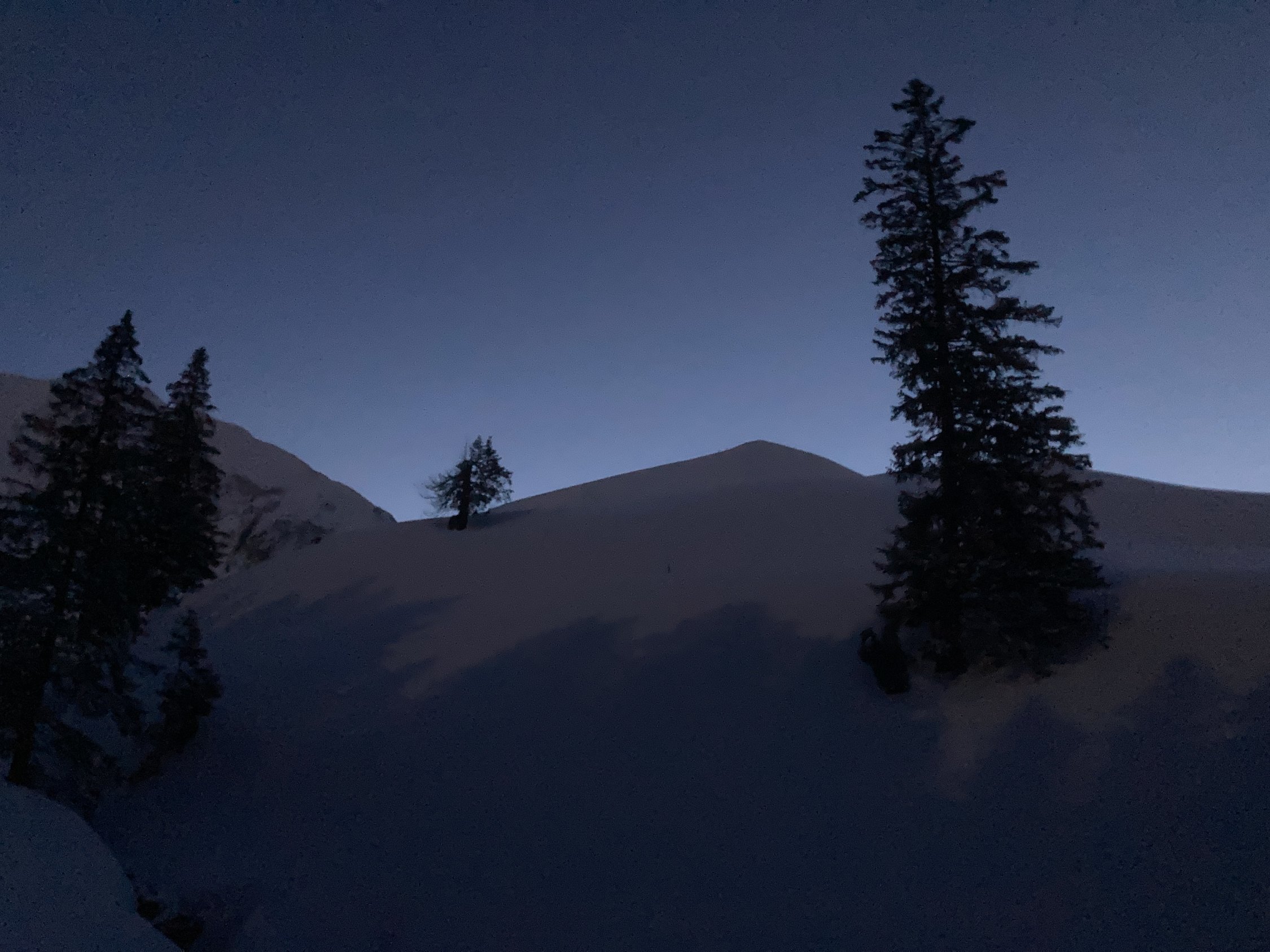 Abfahrt noch durch unberührte Hänge möglich.