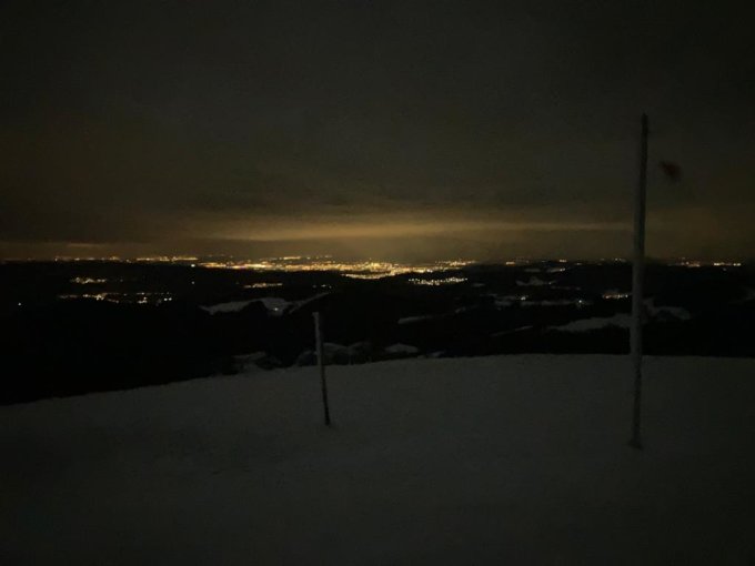 Der Fast-Vollmond hat die Gegend teilweise gut beleuchtet. Am Gipfel der Hohen Winde noch kurze Abfahrt Richtung Rotmatt, dann wieder Aufstieg und Abfahrt retour umziehen Liftstation.