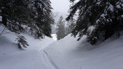 Start 11Uhr bei etwa um die Nullgradgrenze. Zu Beginn Schneefall und gute Sicht. Ab etwa Hälfte Aufstieg in Regen übergehend.