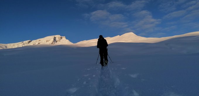 Bis 60 cm gut gesetzter Pulverschnee auf der ganzen Tour, ohne Windeinfluss. Leider langsame Eintrübung aus Westen gegen Mittag.