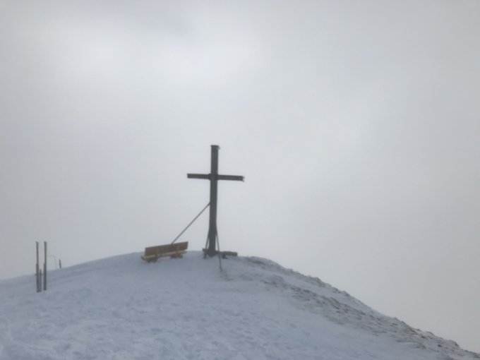 Unten Nassschnee, nach oben zunehmend besser. Bis ca. 1500 hat es sicher reingeregnet, mit entsprechend Rillen, weiter oben dann wohl geschneit. Breite Skier waren heute von Vorteil;-). Mit Schneeschuhen sicher streng, gab teilweise sehr tiefe Spuren, auch in der heiligen Skitourenspur.