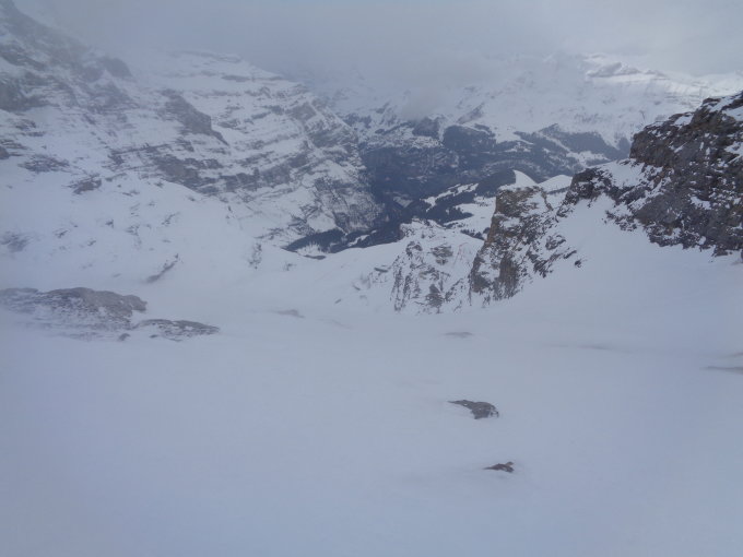 - Die Flanke ist unter dem Eisbruch sehr breit eingeschneit. Somit kann man von unten gesehen, an