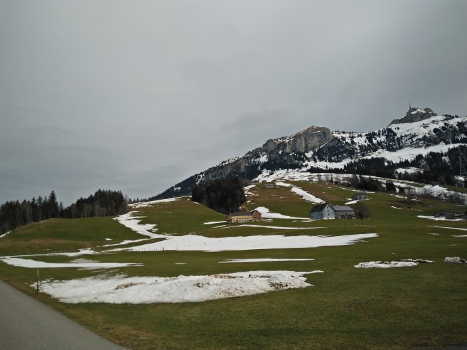 Besser als gedacht. Aufstieg: Kurze Tragestücke kurz nach Brülisau in den Wiesen und beim Klein Rossberg. Oben Top. Abfahrt: Oberhalb vom Unter Kamor (~1400m) und am Kamm gut gesetzter, kompakter und nasser Schnee, firnähnlich (erstaunlich schön) zu fahren. Unterhalb/ab dem Wald sumpfig und stockend.