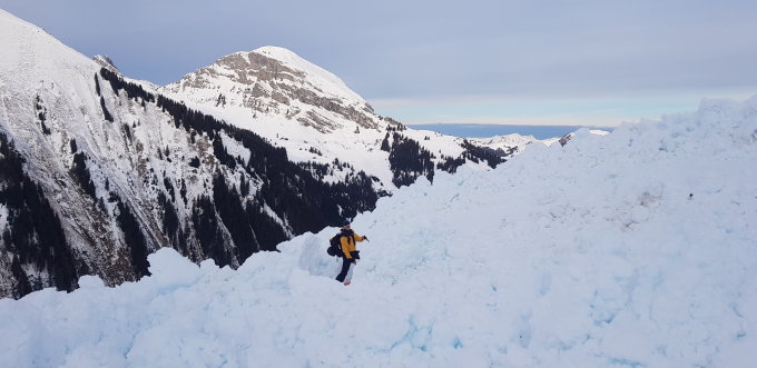 Trotz die letzte Tage, noch genugend Schnee, deswegen noch gut machbar, aber morgen vielleicht heikler wegen höher Temperatur.