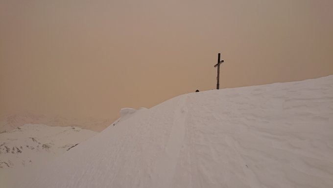 Ich bin einer Dreiergruppe zum Hochgamatsch gefolgt, um die Spur auszunutzen. Dann 100Hm Abfahrt in den Kessel unterhalb Hochgamatsch und weiter zum Hochfinsler. Eine Spur aus den Vortagen war vorhanden. Selber Weg zurück.