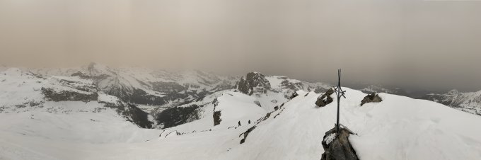Schneeverhältnisse waren durchgehend schwierig. Trotzdem und insb. dank Saharastaub ein unvergesslicher Tag.