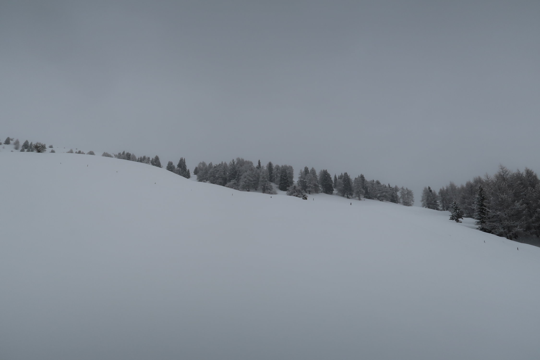 Abfahrt nur mässig gut. Im obersten Bereich pulvrig, ab ca. 1900 m ü. M. merkt man aber die Altschneeunterlage sehr gut. Diese ist feucht bis nass und nur zum Teil tragend...