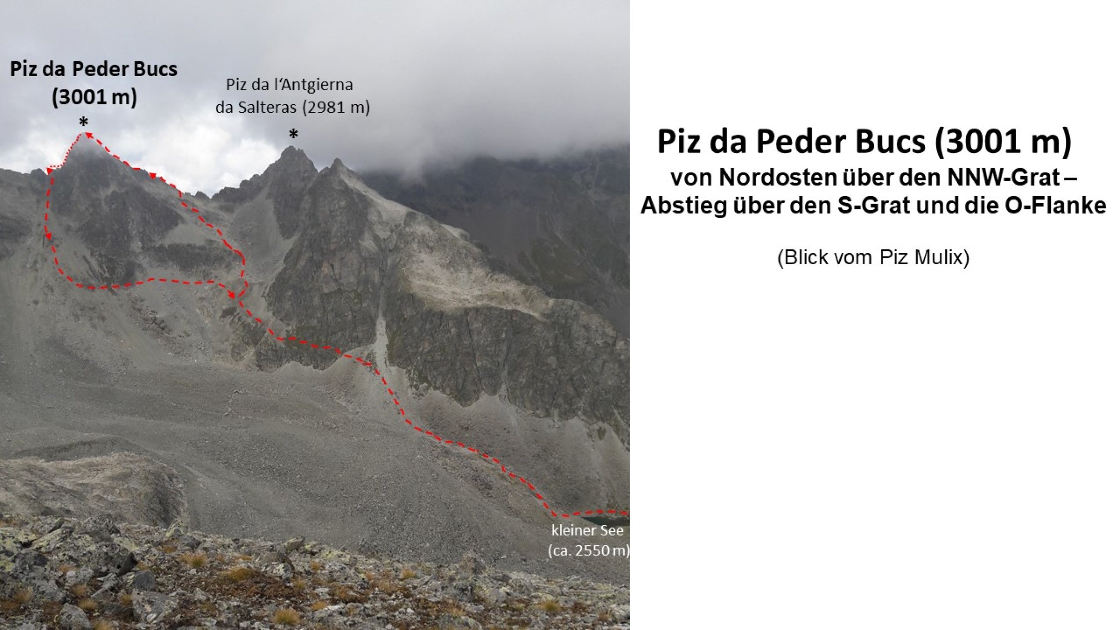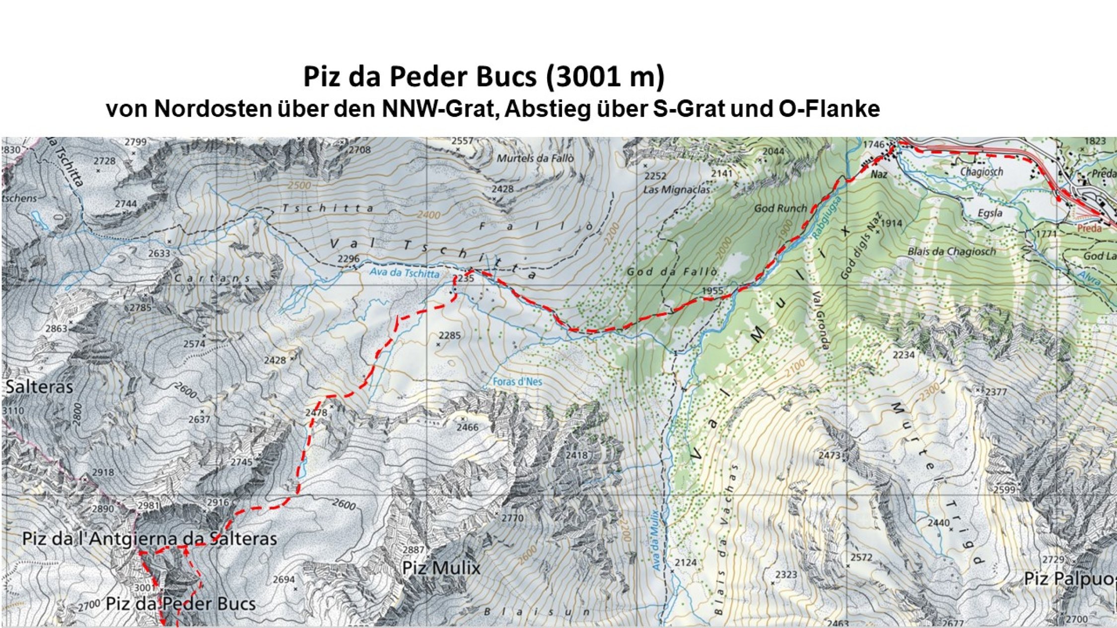 Piz da Peder Bucs (3002m): Von Preda über Nordostseite und NW-Grat, Abstieg über S-Grat und O-Flanke