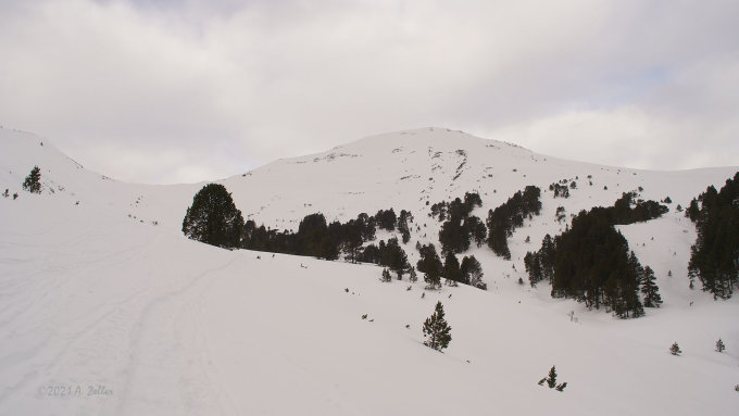Abfahrt der Aufstiegsroute entlang zurück.