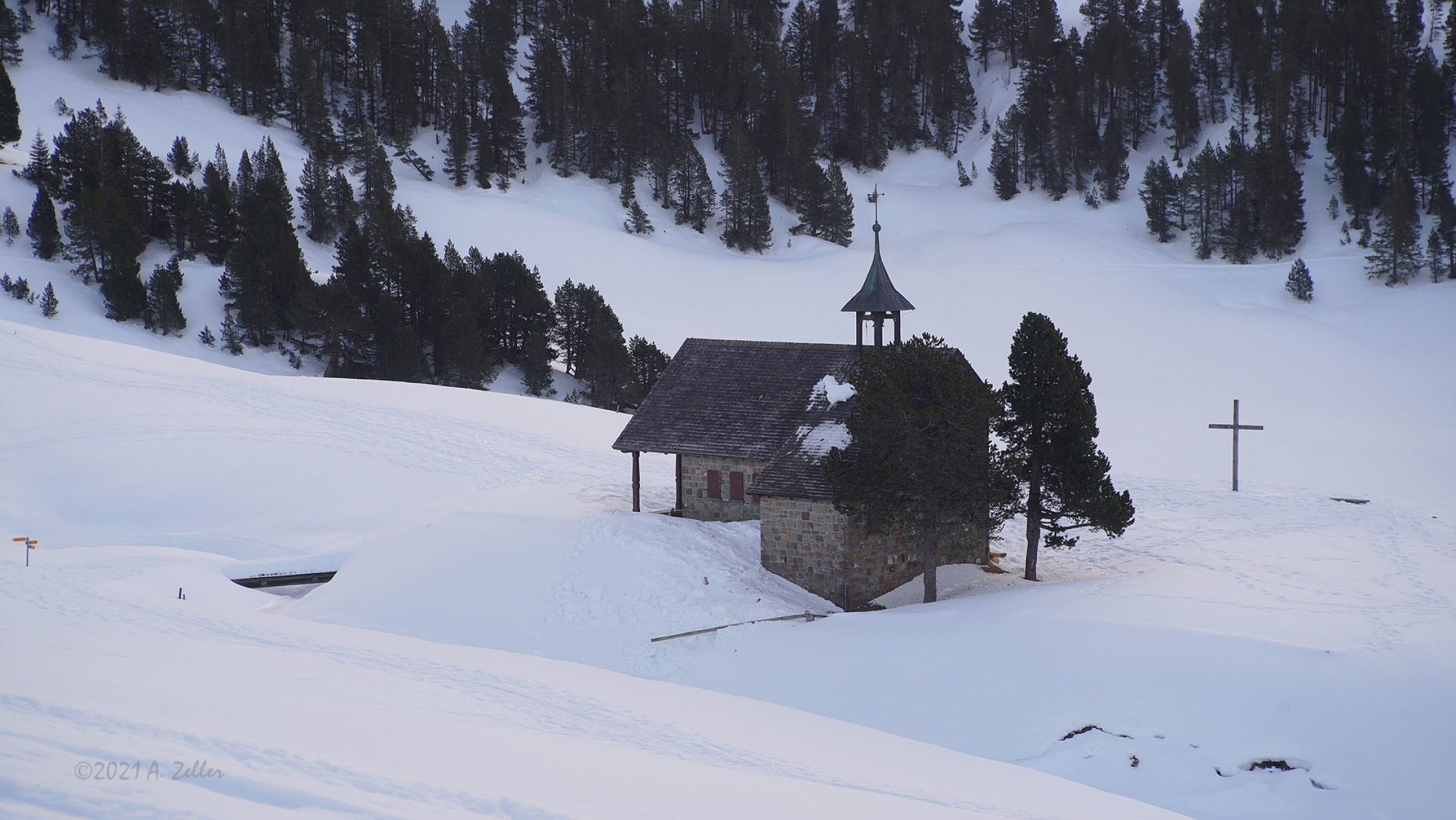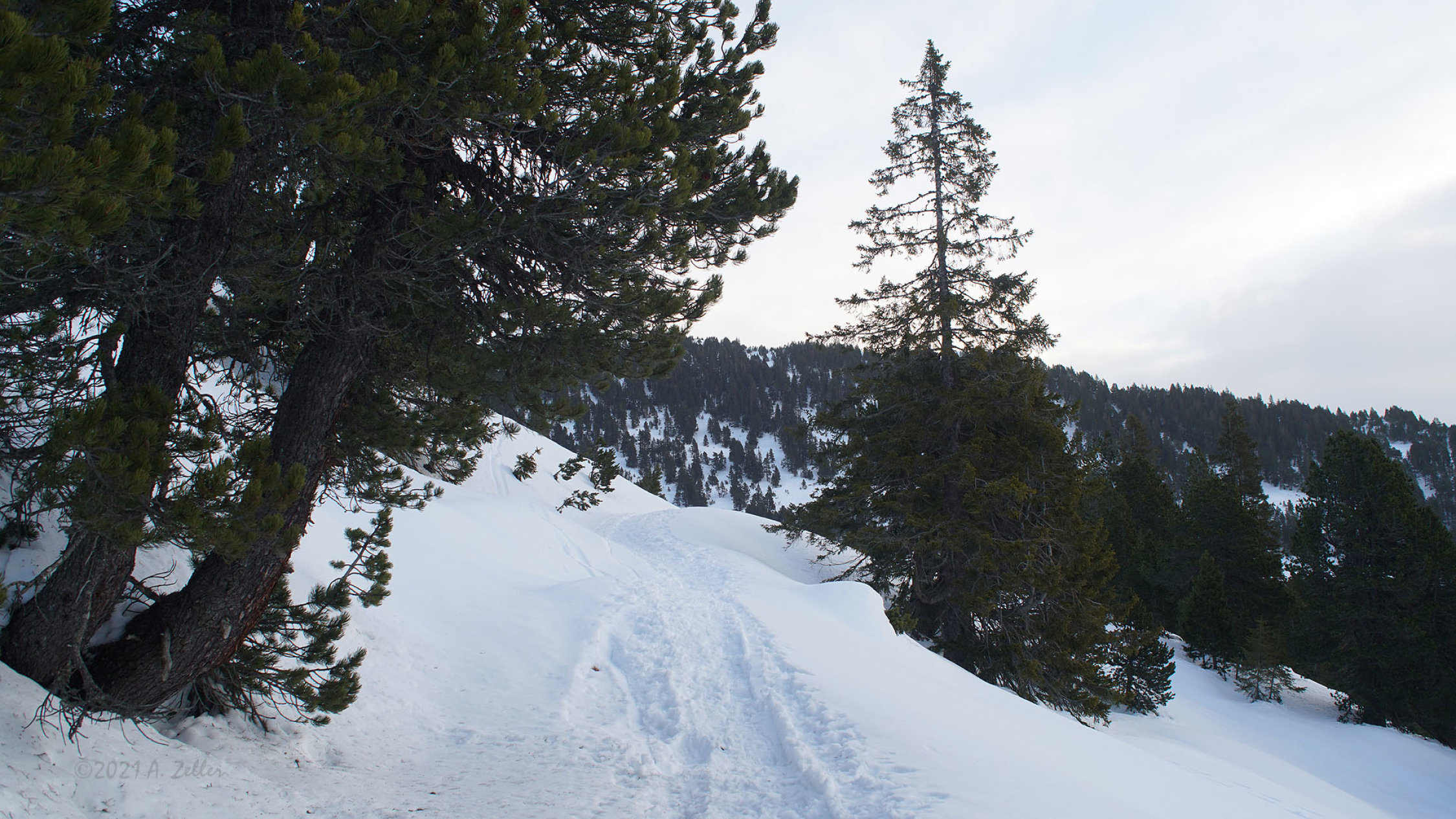 Ganze Route gut eingeschneit und durchgehend mit Skis, Snowboard, Schneeschuhen begeh-/befahrbar.