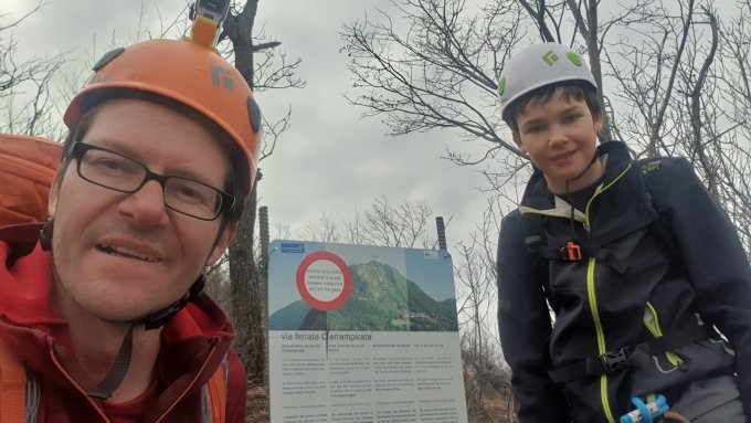 Wege recht trocken. Kein Schnee mehr, auch nicht am Weiterweg Richtung Morcote. Unterer Teil der Ferrata sehr nass und daher wenig griffig. Man muss sich beherzt am Seil hochziehen und die Füsse auf Reibung setzen. Den oberen Teil empfanden wir als schöner, fester und griffiger. Relativ milde Verhältnisse und kein Wind. Für den Sohn (12 Jahre) war es eine stolze Tour. Musste ihm ab und zu beim Umhängen der Karabiner helfen.