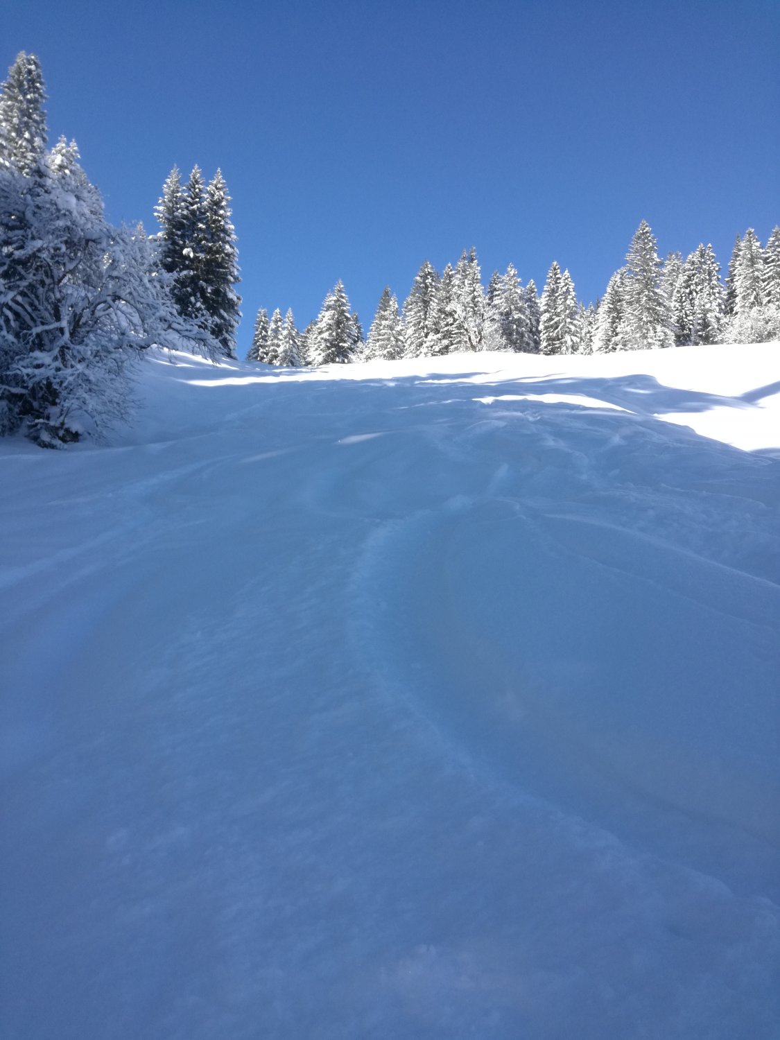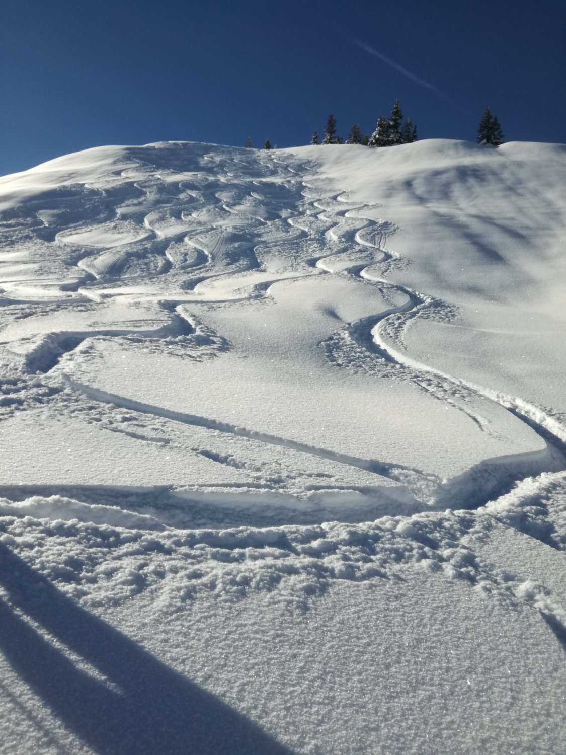 Alle Abfahrten in bestem Pulverschnee- morgens noch nicht verfahren. Aufstieg zur Ob.Wilhelminen-Alpe gespurt.