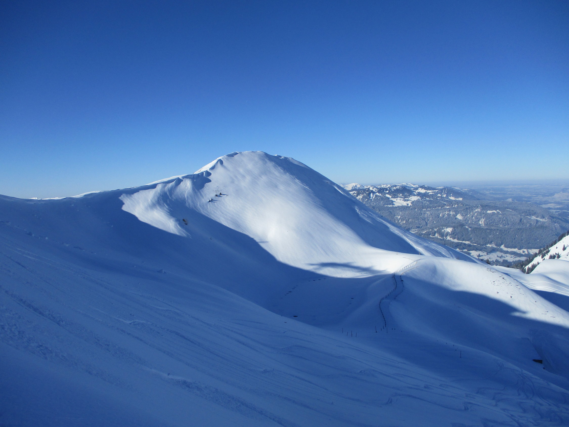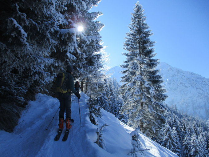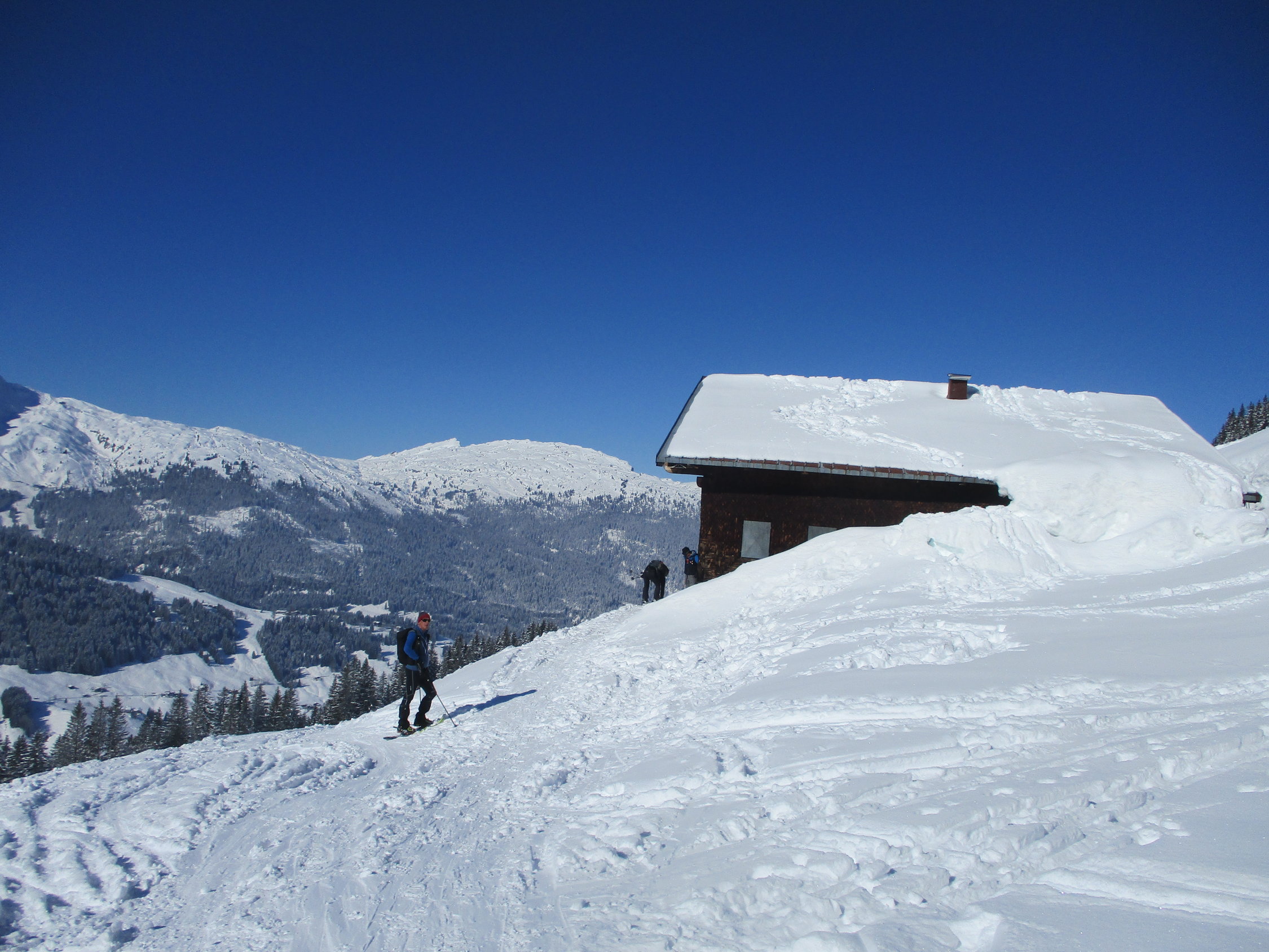 Die Skilifte im Kleinwalsertal bleiben bis auf Weiteres außer Betrieb. Insofern kommen wir in letzter Zeit zu Touren (Hochgrat vor zwei Wochen), die wir unter anderen Umständen allenfalls in der Vor- oder Nachsaison unternehmen würden.