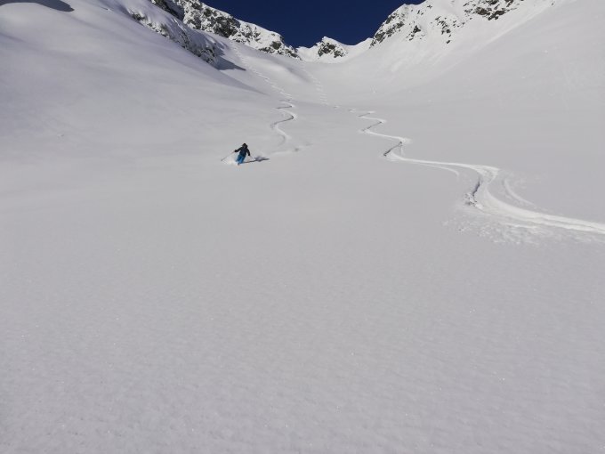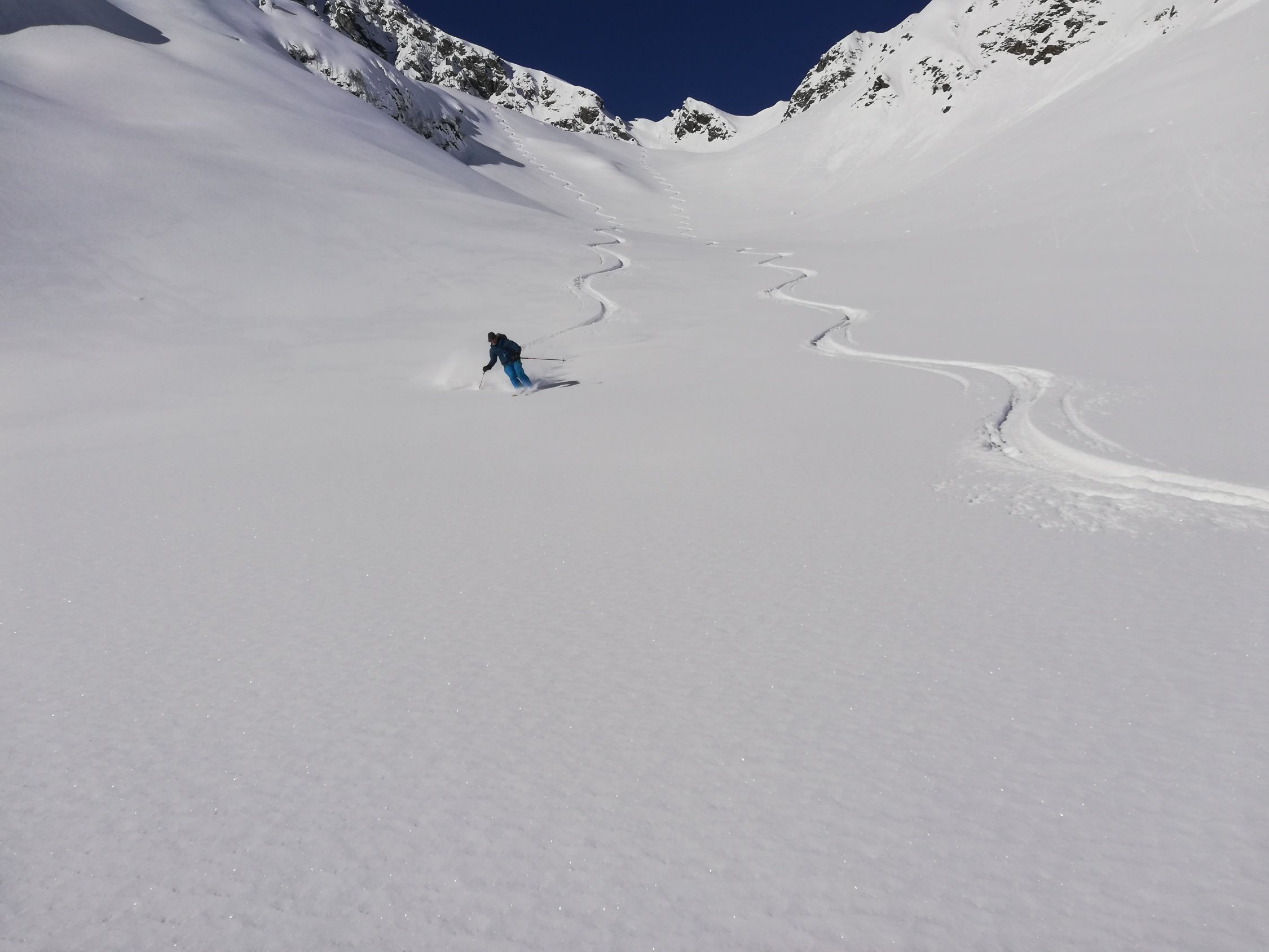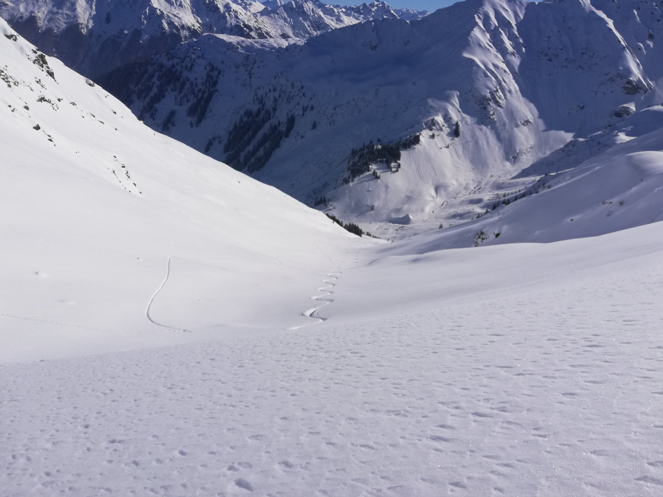 Sehr gute Verhältnisse auf der Route. Abfahrt ins Gampadelstal war wunderschön, feinster Pulver. Anstieg zur Tilisunahüte einsam und idyllisch. Dann zur Sulzfluh einige Tourengeher von Schweizer Seite kommend. Das Gemstobel ist komplett verfahren. Die Abfahrt im Rachen war nicht so wie wir es uns gewünscht hatten. Eingeblasen und leichter Bruch. Aber je weiter wir runter kamen desto besser wurde der Schnee.