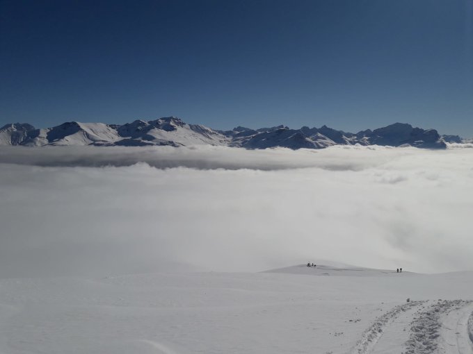 Oben schöner Pulver, unten Bruchharsch und z.T. stark verfahren.