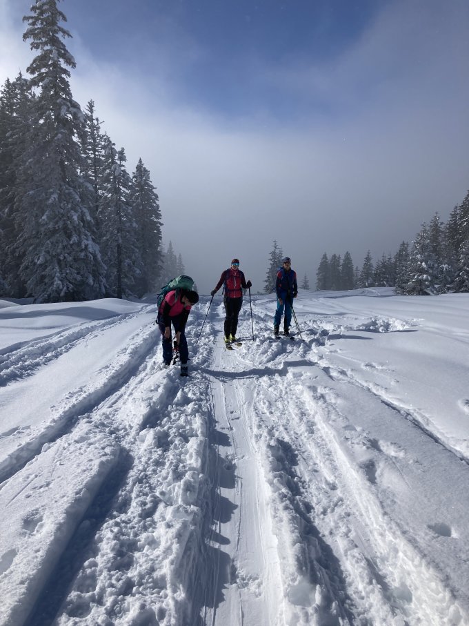 Dann super Powder bis zur Schwammhütte, auf der Strasse nach Engi sind noch zwei Lawinenkegel zu überfahren ist aber Problemlos.