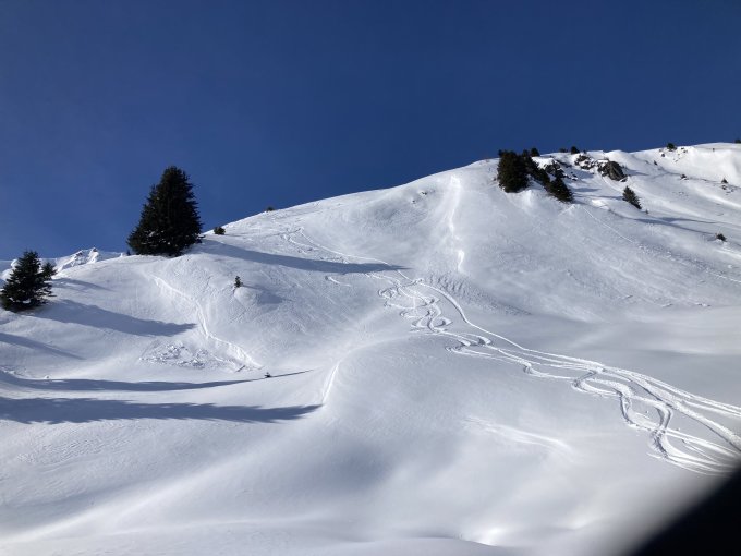 Sind über Pirigen hochgestiegen,.. im Wald hatte es einige eisige Stellen, deshalb waren Harscheisen das erste Mal diese Saison im Einsatz. Abfahrt dann über das Skihaus Casanna,.. je nach Hanrichtung lässt sich wunderbarer Pulverschnee finden.