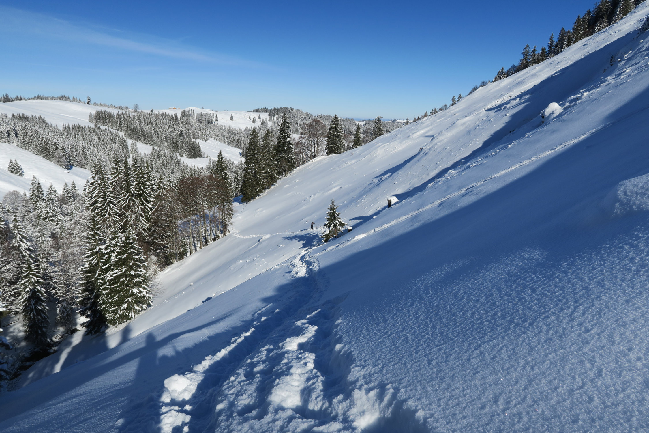 Tolle Scheeverhältnisse und traumhaftes Wetter heute. Wir waren alleine unterwegs auf dieser Route. Auf dem Gipfel sah's dann anders aus.