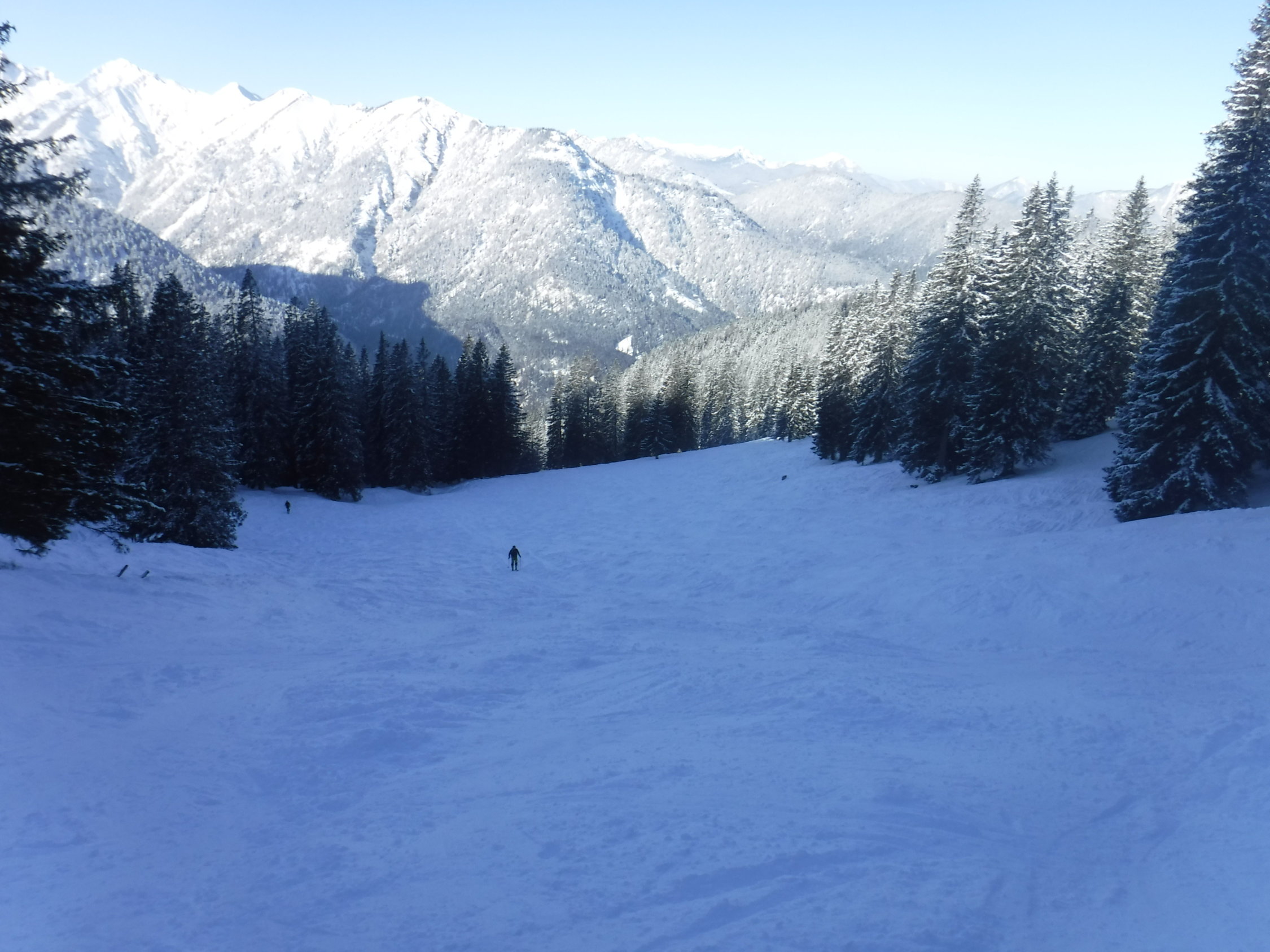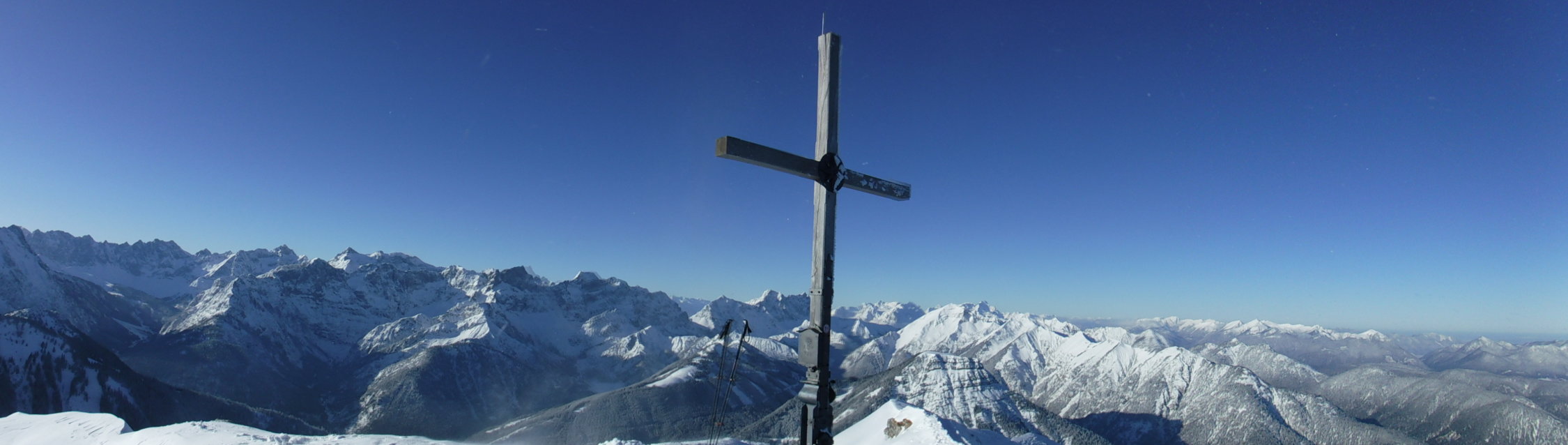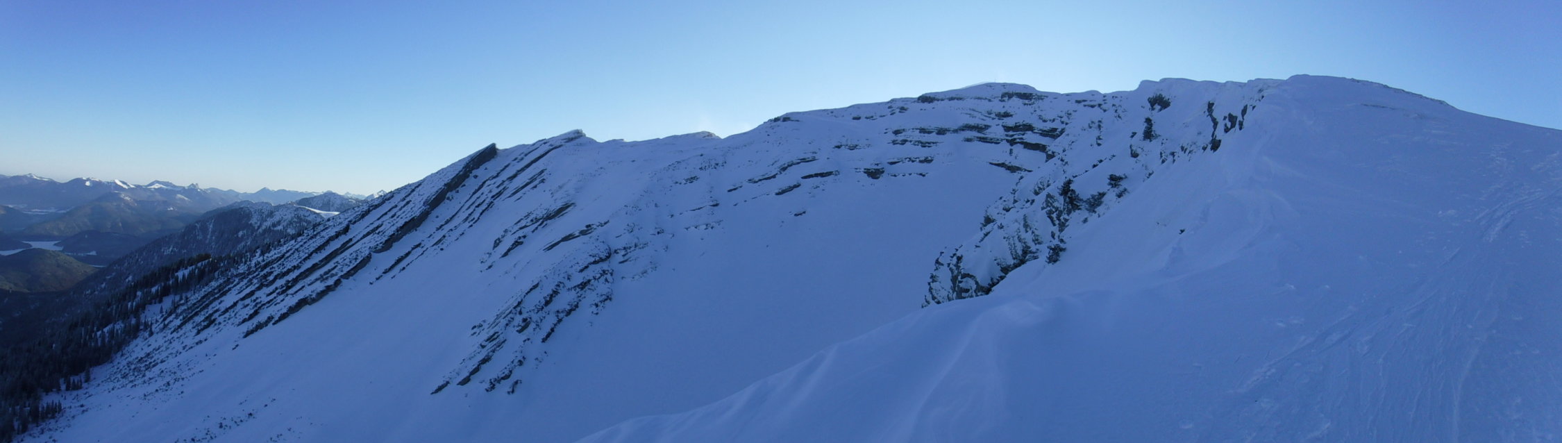 Diese Route ist wohl der Winterrouten-Klassiker im Karwendel schlechthin. In jeglicher Hinsicht: Nicht zu lang. Nicht schwer zu erreichen. Von München nicht weit weg. Gut abzufahren (wer kann). Super Panorama ins Bayrische Voralpenland und über die Karwendelketten. Bei schönem Wetter stets überlaufen. Also beste Voraussetzungen für einen Landkreis südlich von München, sich eine fragwürdige Praxis angeeignet zu haben, Natursuchenden ihr Vergnügen zu versauern.