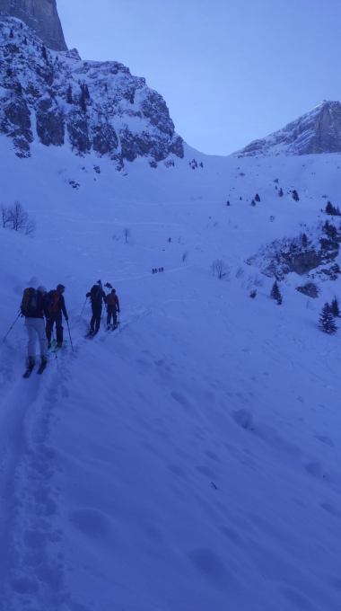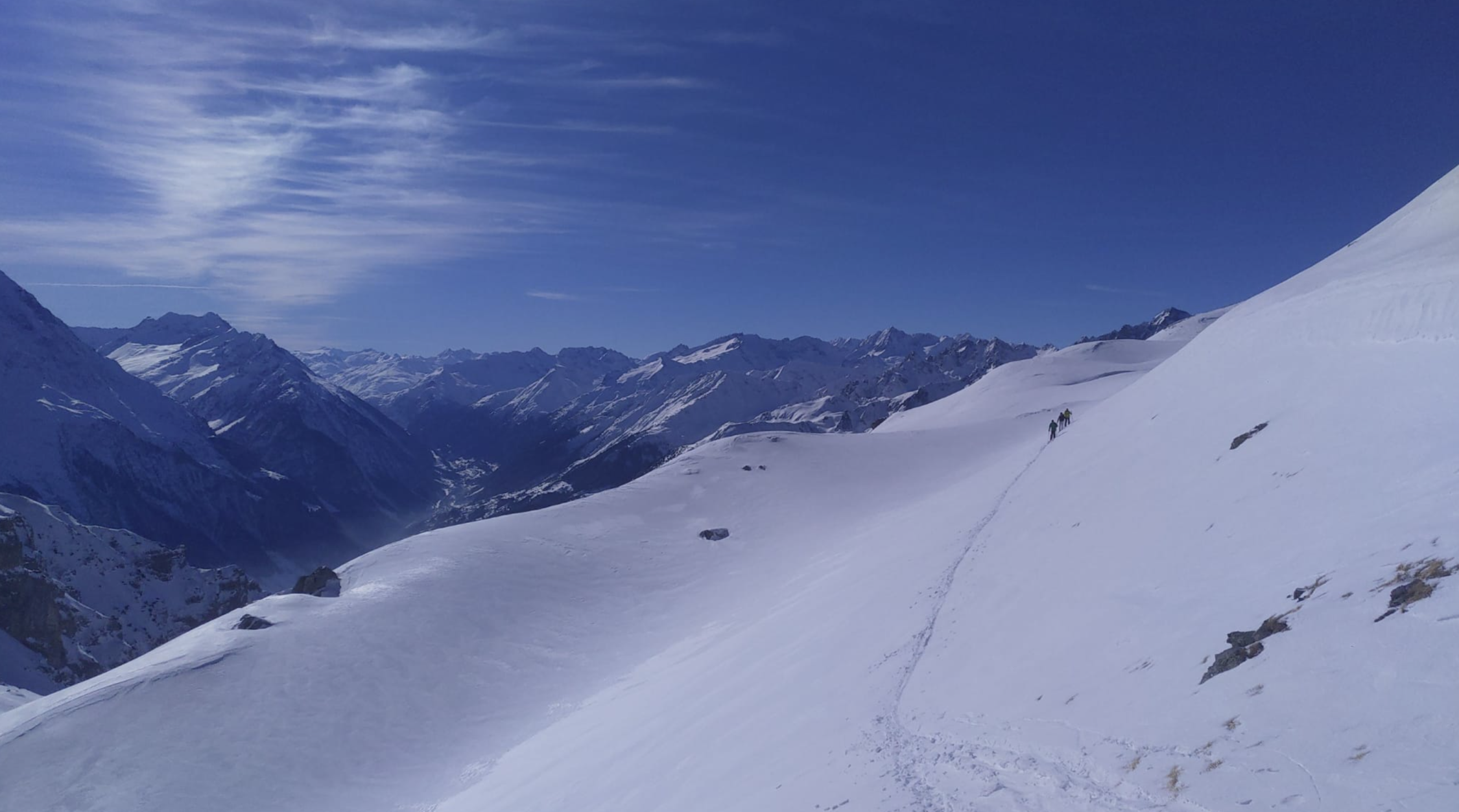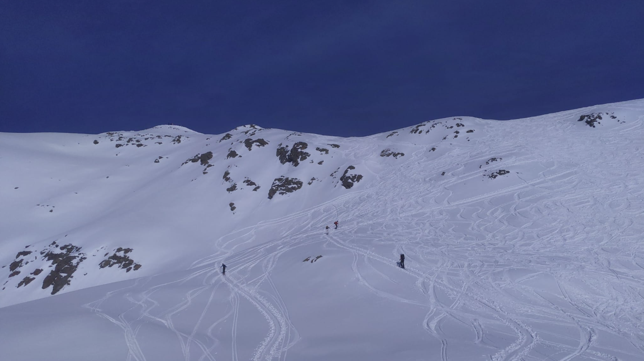 Nach einer kurzen Abfahrt zum Lang Büel mit Fellen erwartete uns eine perfekte Spur durch das Colouir zum Punkt 2366. Von dort aus einer gute angelegten Spur zum Hoch Fulen.