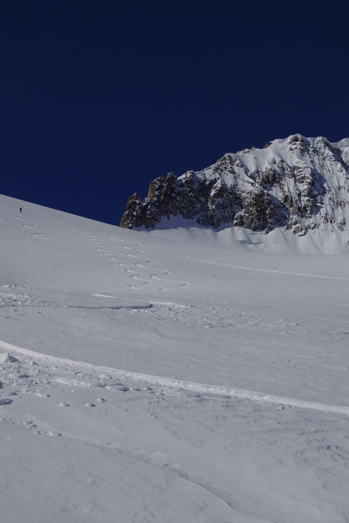 Start um 7.30 in Realp bei eisiger Kälte aber herrlichem Wetter. Hatte erstaunlich wenig Leute im Gebiet. Aufstieg in ausgezeichneter Spur. Auf der Abfahrt zuoberst herrlicher Powder, dann windbearbeitet, aber immer noch gut zu fahren. Wir sind über den Schafberg nach Realp gefahren: In vielen Hängen hatte es noch Pulver auf harter Unterlage.