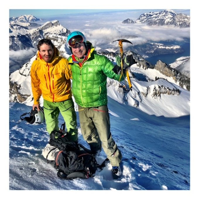 Vom Firtiggrätli guten Einblick in die Nordflanke, welche schon ziemlich imposant ist. Vor uns war ein Einzelgänger der "glücklicherweise" Versuchskaninchen spielte :-). Haben später kurz mit ihm gesprochen, hatte so einen richtig schönen Muotathaler dialekt. Er meinte nur trocken wir sollten auf der Gipfelflanke nicht zu weit links gehen. Er selber ist fast bis unter den Gipfel nur mit Fellen, wir sind ca. 120 Höhenmeter unter dem Gipfel zu Fuss und mit Pickel weiter. Eine 2er Gruppe, welche nach uns kam hatte Steigeisen. Beide waren wir froh über unsere Hilfsgeräte.