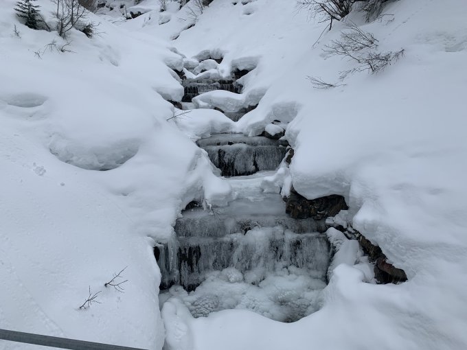 Auf dem Strässli einige Tragstelle. Das Strässli wurde bis zum Brückli um ca. 15 cm vom Schnee geräumt, dafür eine Fahrverbotstafel montiert. Leider wird mit den steigenden Temperaturen die Tragepassage immer länger. Einfach schade!