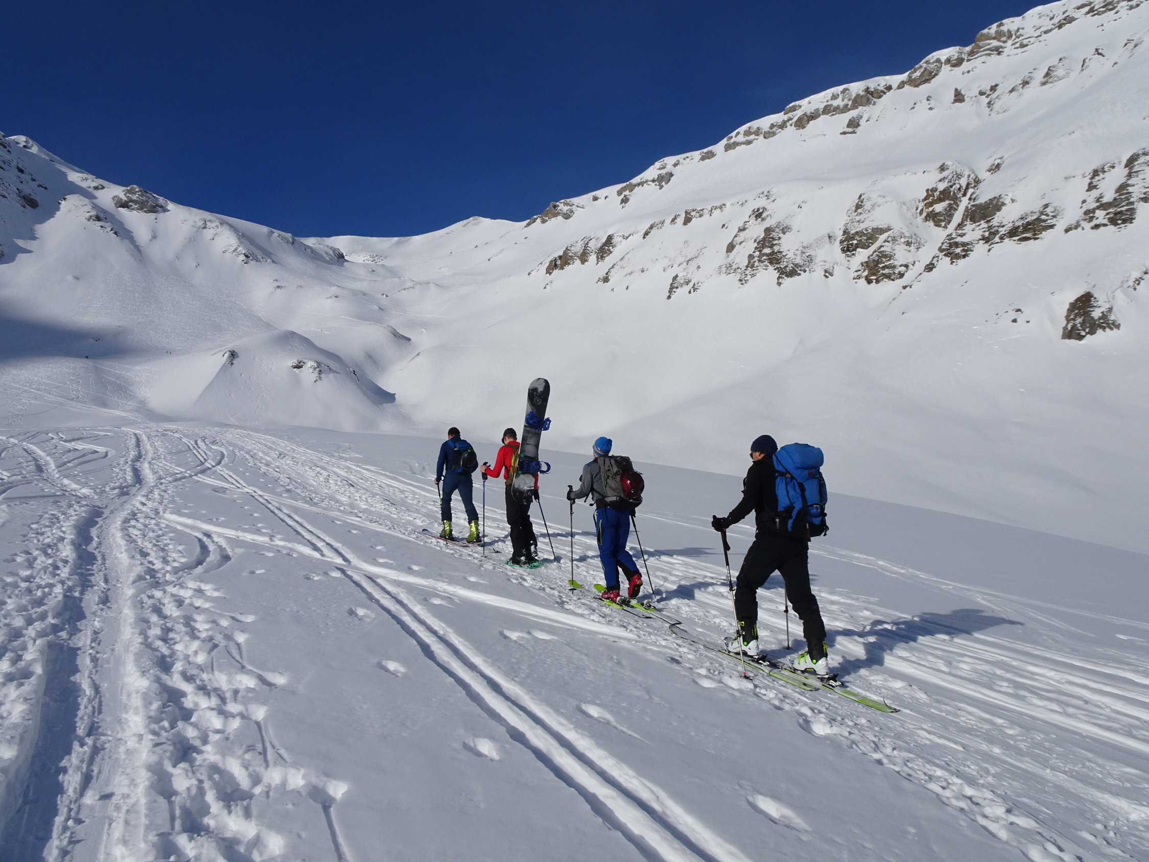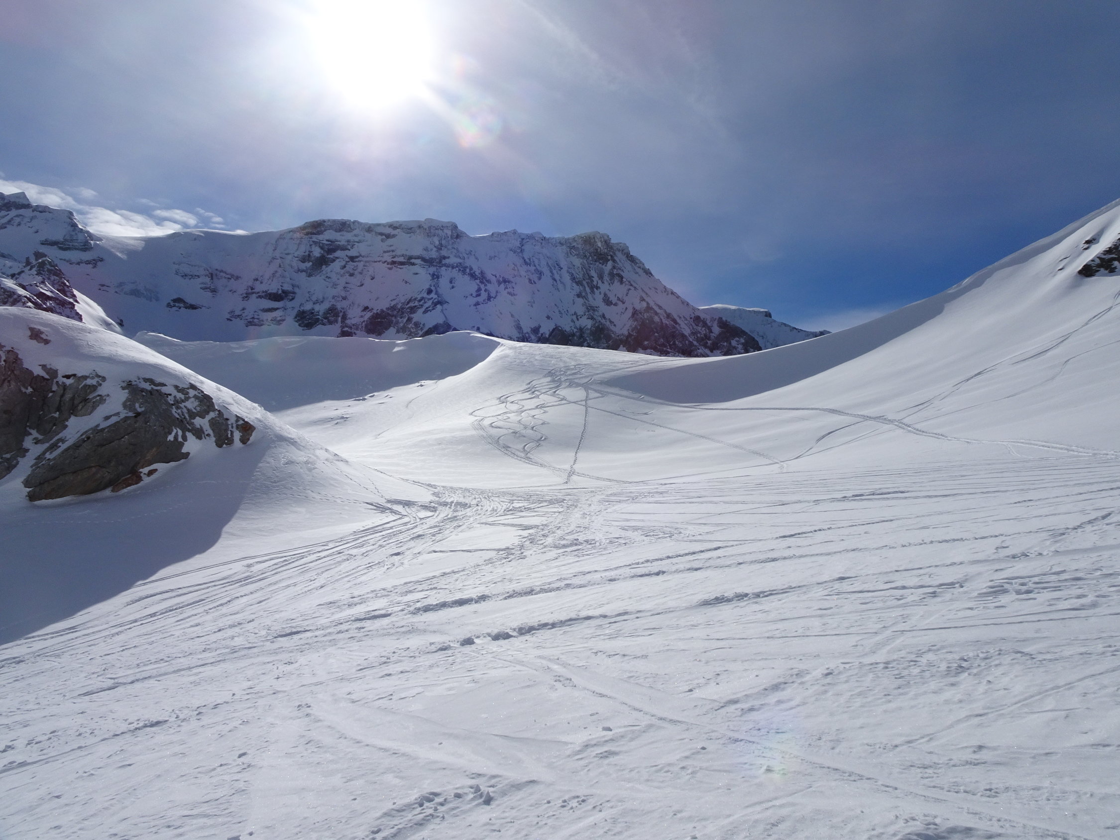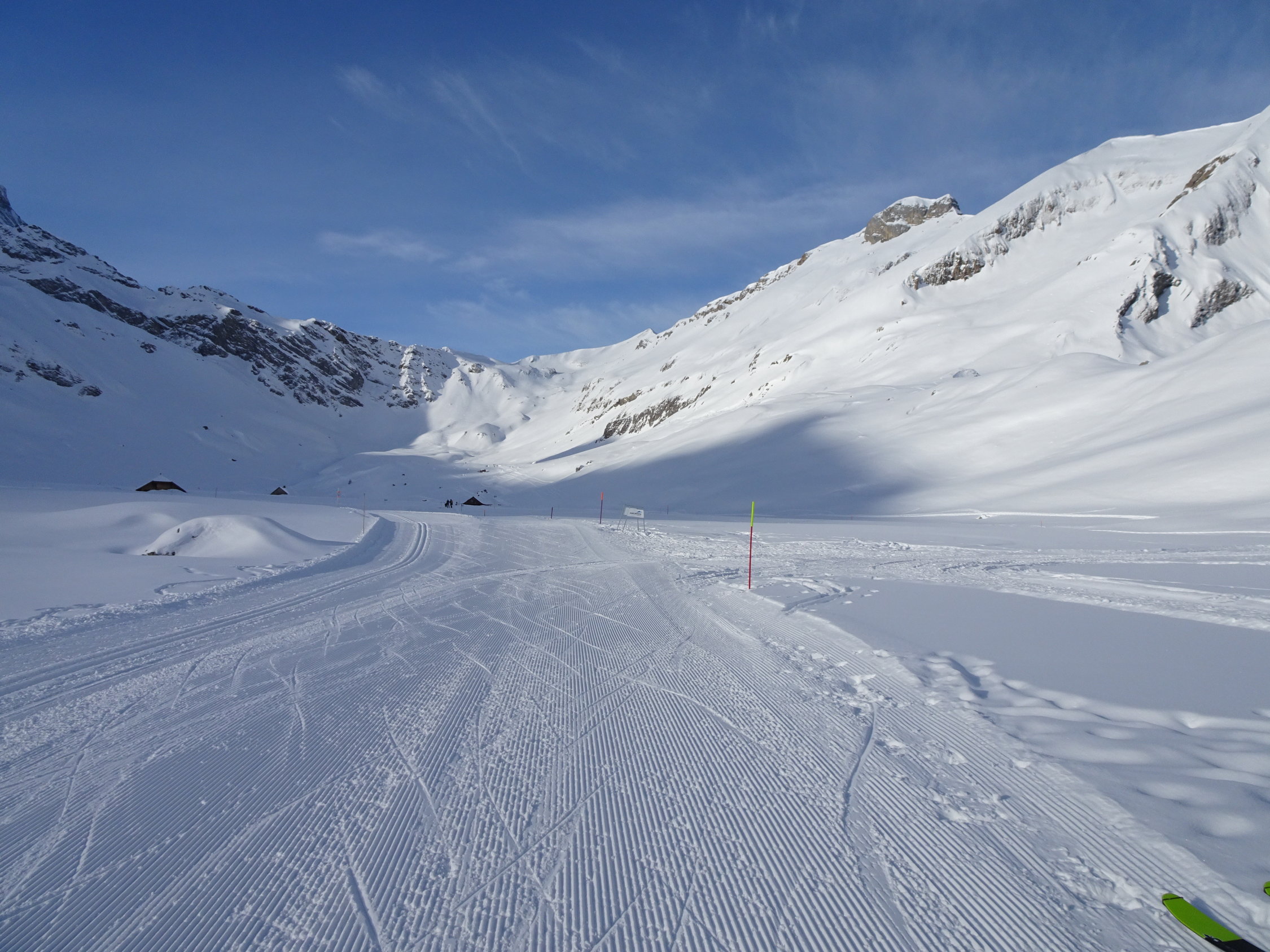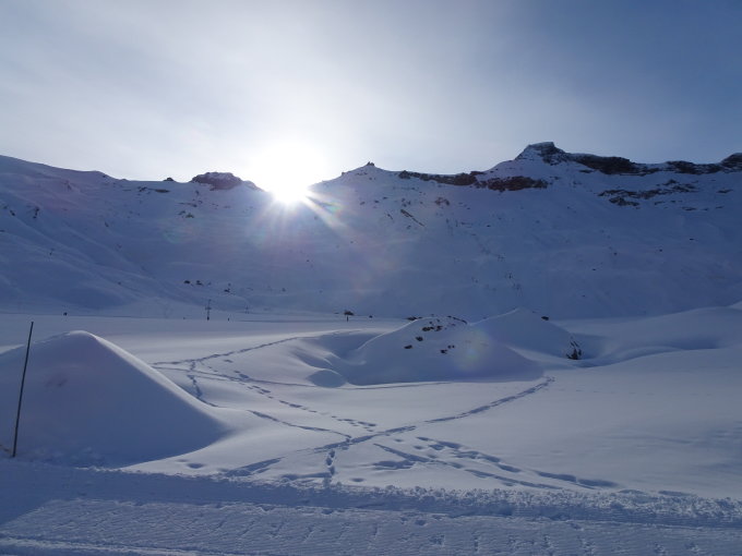 Schnee: durchgehend Pulver bzw. aufgrund der einsetzenden Wärme in der Ebene dann feuchter Schnee