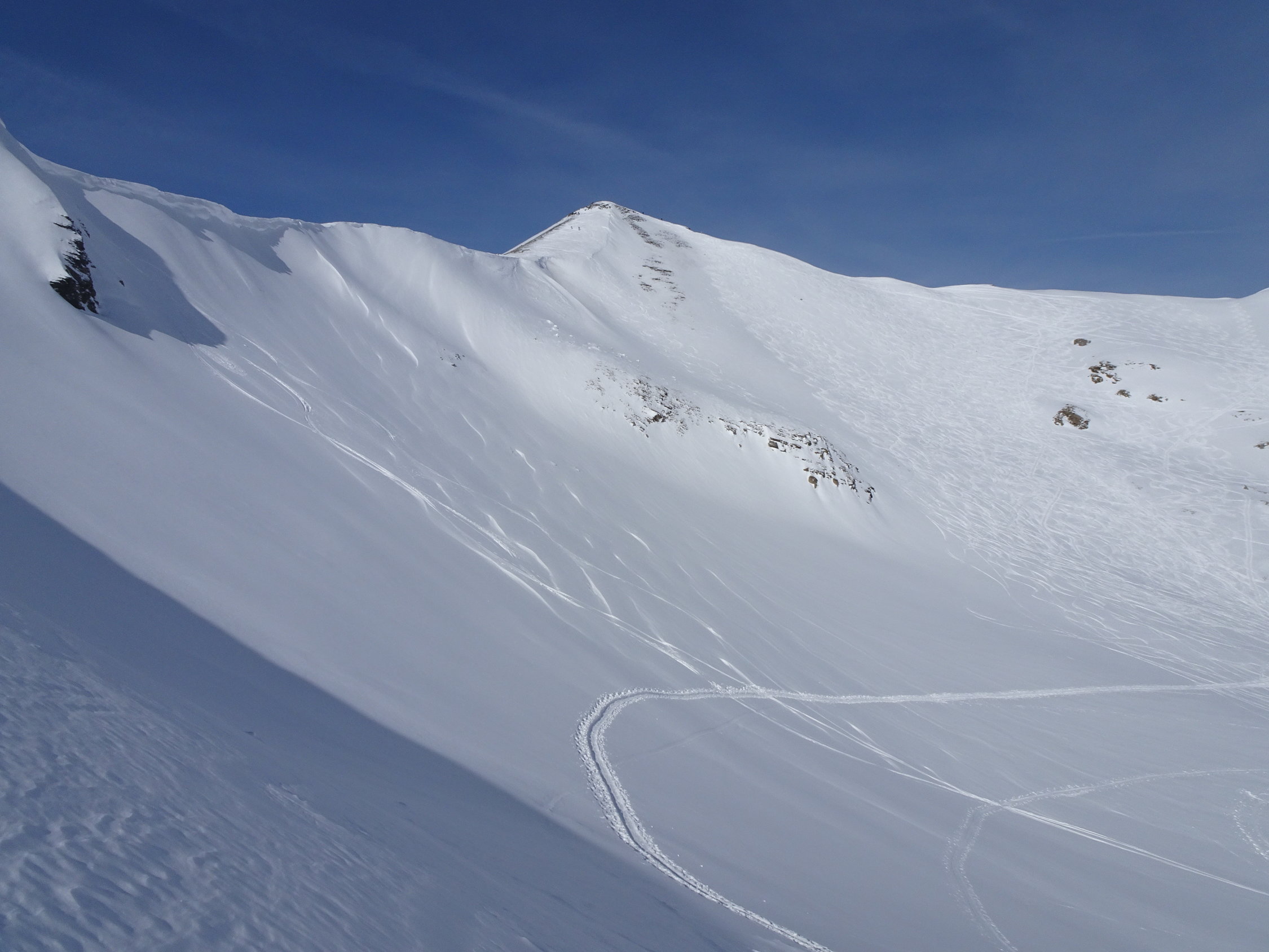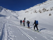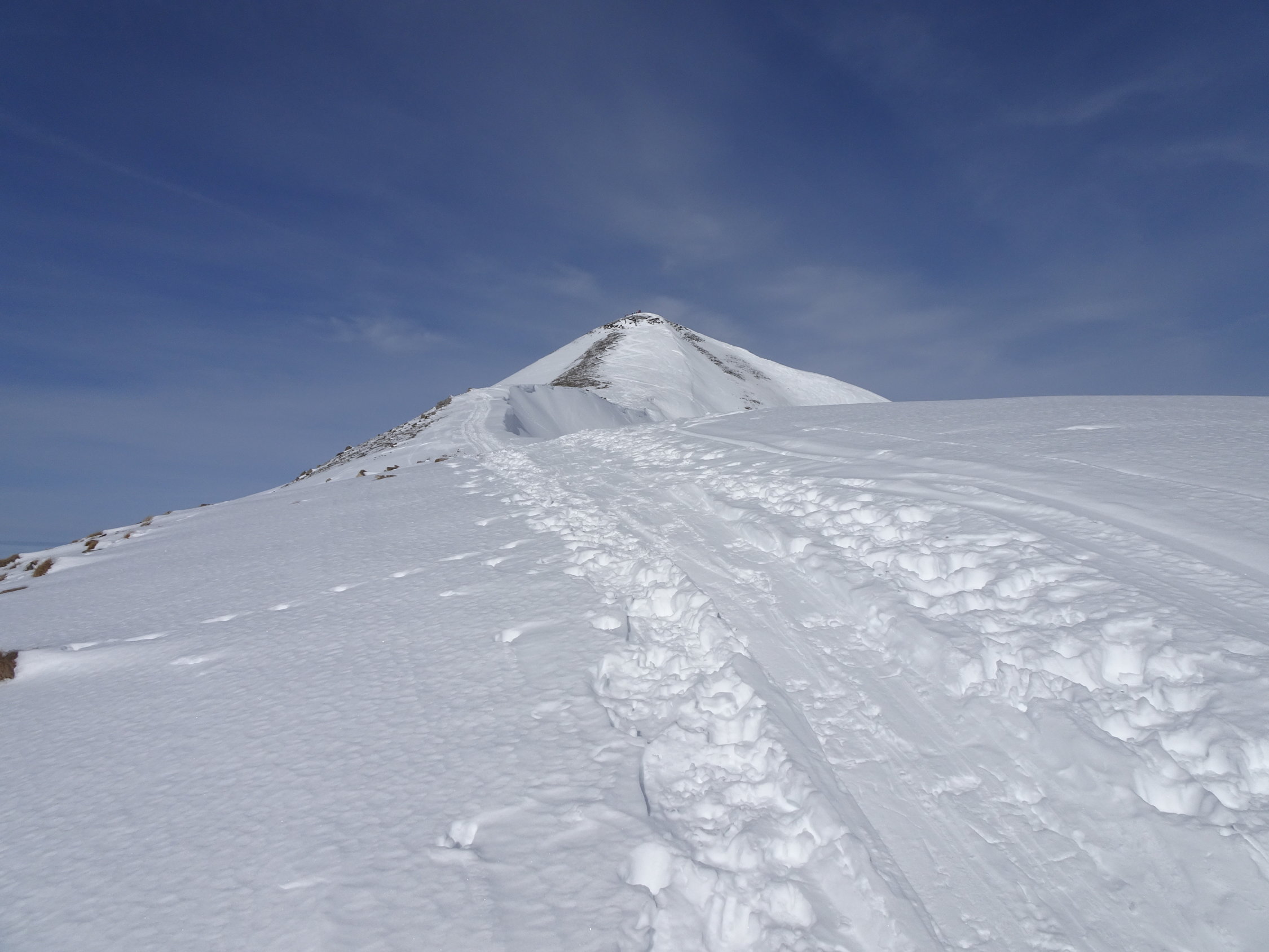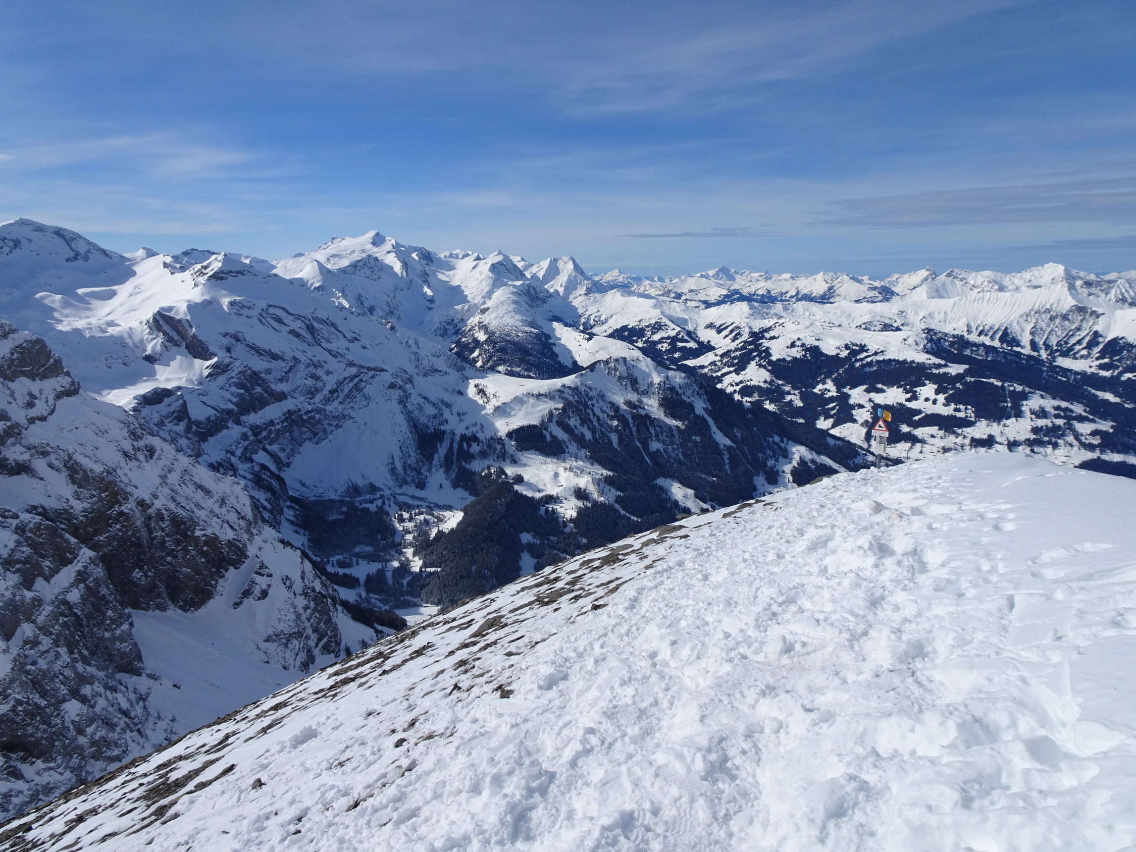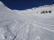 Wetter: zuerst wider erwarten sehr sonnig, schwachwindig/windstill bei kalter Temperatur, an der Sonne wurde es dann bald angenehm warm, am Gipfel rasch hohe Bewölkung welche die Sonne ganz abdeckte und im Schlussteil(erst kurz vor den ersten Häusern) der Abfahrt für diffuse Sichtverhältnisse sorgte